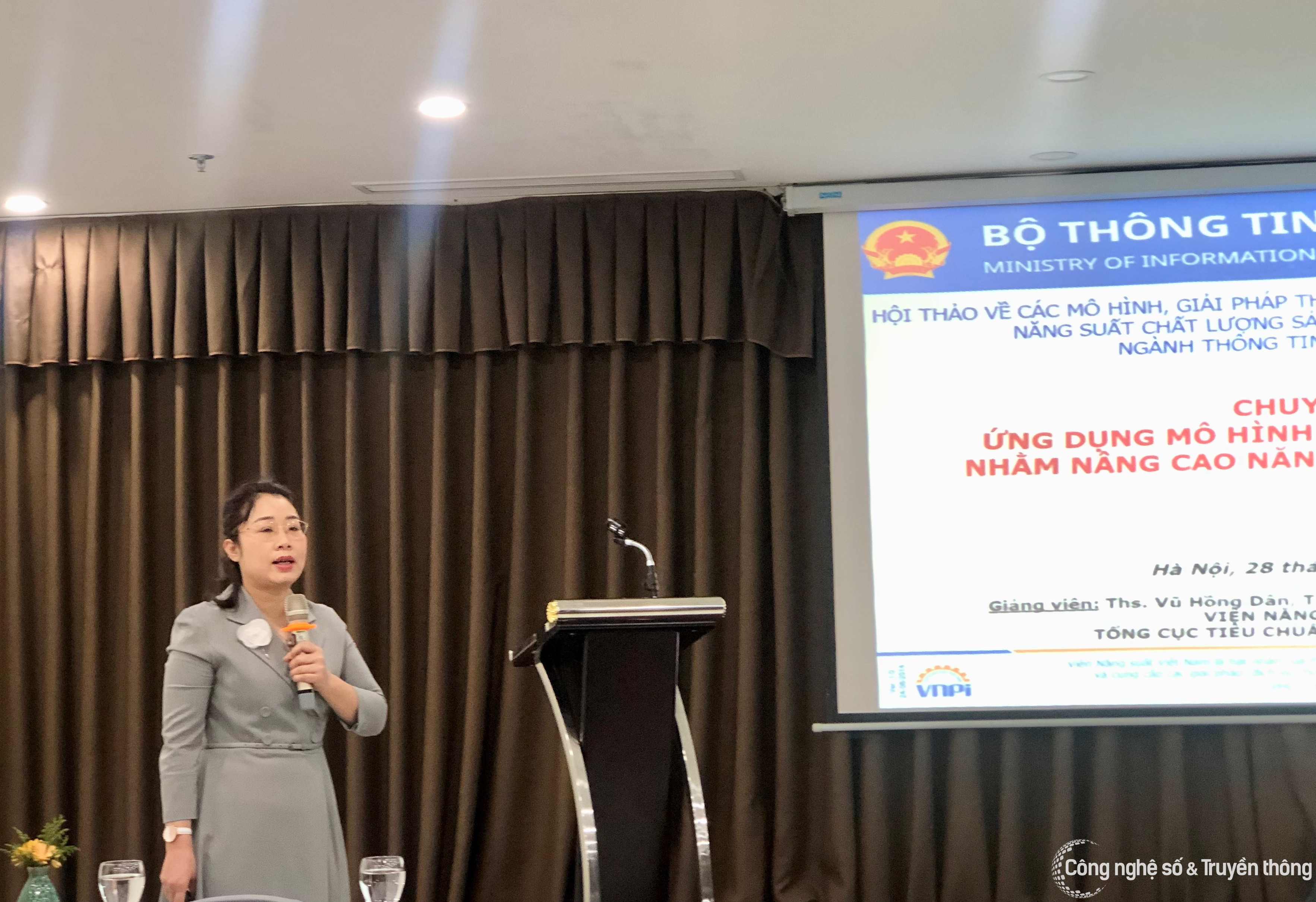 Theo bà Vũ Hồng Dân, Trưởng phòng Tư vấn cải tiến năng suất, Viện năng suất Việt Nam, Tổng cục Đo lường chất lượng, song song với chuyển đổi số và đổi mới sáng tạo, năng suất chất lượng là từ khoá và một trong những chỉ tiêu đánh giá quan trọng hiện nay. Bà Hồng Dân cho biết, dưới góc độ kinh tế quốc gia thì năng suất thể hiện sự thịnh vượng của một quốc gia còn ở góc độ doanh nghiệp nó thể hiện sức cạnh tranh của doanh nghiệp.