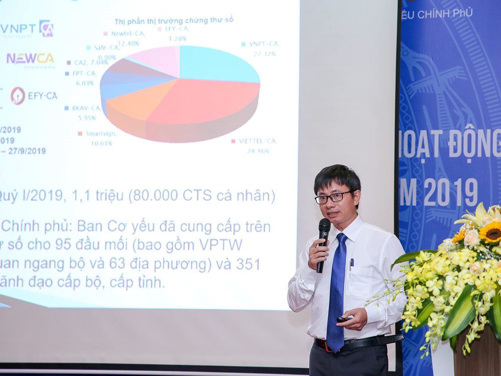 Cụ thể, theo số liệu của Cục Chứng thực số và Bảo mật thông tin - Ban Cơ yếu Chính phủ, tính đến tháng 9/2019, cơ quan này đã cung cấp hơn 200.000 chứng thư số cho 95 đầu mối (gồm Văn phòng Trung ương Đảng, 31 bộ, cơ quan ngang bộ và 63 địa phương) cùng 351 chứng thư số cho lãnh đạo cấp bộ, cấp tỉnh.
