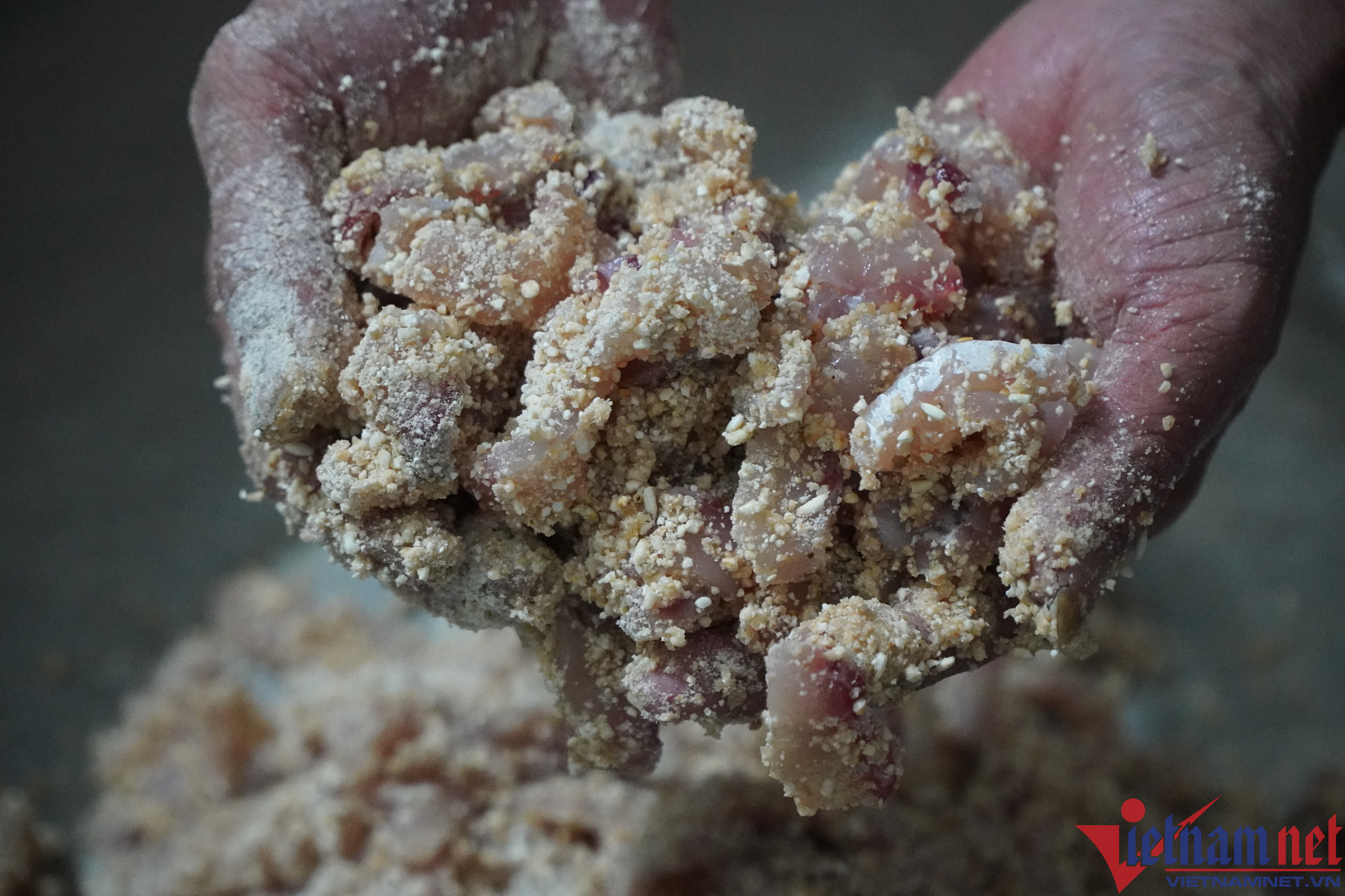 Tiếp đó đến công đoạn rang thính (thính bằng ngô hoặc gạo nếp đều được) rồi mang đi xay nhỏ. Thính ngoài việc hút ẩm trong thớ thịt cá, còn làm thơm, lên men và giữ cho cá không bị thiu. Sau khi cá ráo nước, thì tiến hành rắc thính vào và trộn đều.
