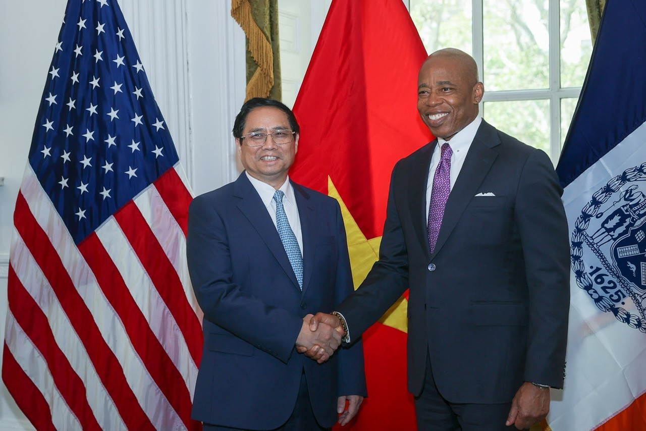 Ngày 22/9, tại New York, Thủ tướng Phạm Minh Chính gặp Thị trưởng thành phố New York Eric Adams nhân dịp tham dự Phiên thảo luận chung cấp cao Đại hội đồng Liên Hợp Quốc khóa 78 tại Mỹ.
