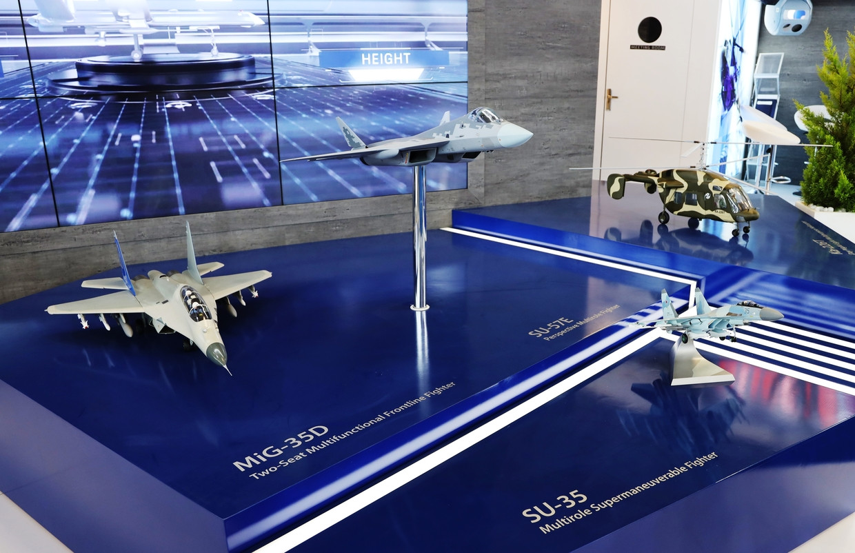 RT đưa tin, những vũ khí hiện đại được Nga đưa tới triển lãm phải kể đến máy bay chiến đấu đa nhiệm thế hệ thứ năm tối tân Su-57E, máy bay chiến thuật hạng nhẹ Checkmate, máy bay vận tải quân sự IL-76MD-90A(E), IL- 78MK-90A, máy bay chiến đấu siêu cơ động Su-35 và Su-30SME, cùng máy bay chiến đấu đa năng MiG-35D.