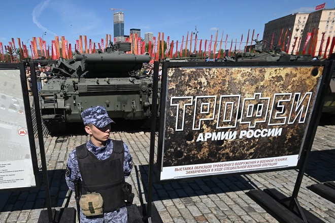 Một cuộc triển lãm vũ khí và thiết bị quân sự của Ukraine và do NATO cấp cho Kiev nhưng bị quân đội Nga tịch thu trong quá trình xung đột ở Ukraine cũng đã được trưng bày tại Moscow kể từ ngày 1/5 như một phần trong lễ kỷ niệm Ngày Chiến thắng.