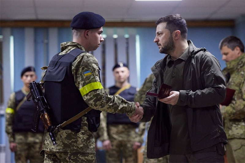 "Các bạn đã liều mạng vì tất cả chúng tôi và vì đất nước của chúng ta”, ông Zelensky nói với những người lính, đồng thời khen ngợi và trao huân chương, quà tặng cho họ.