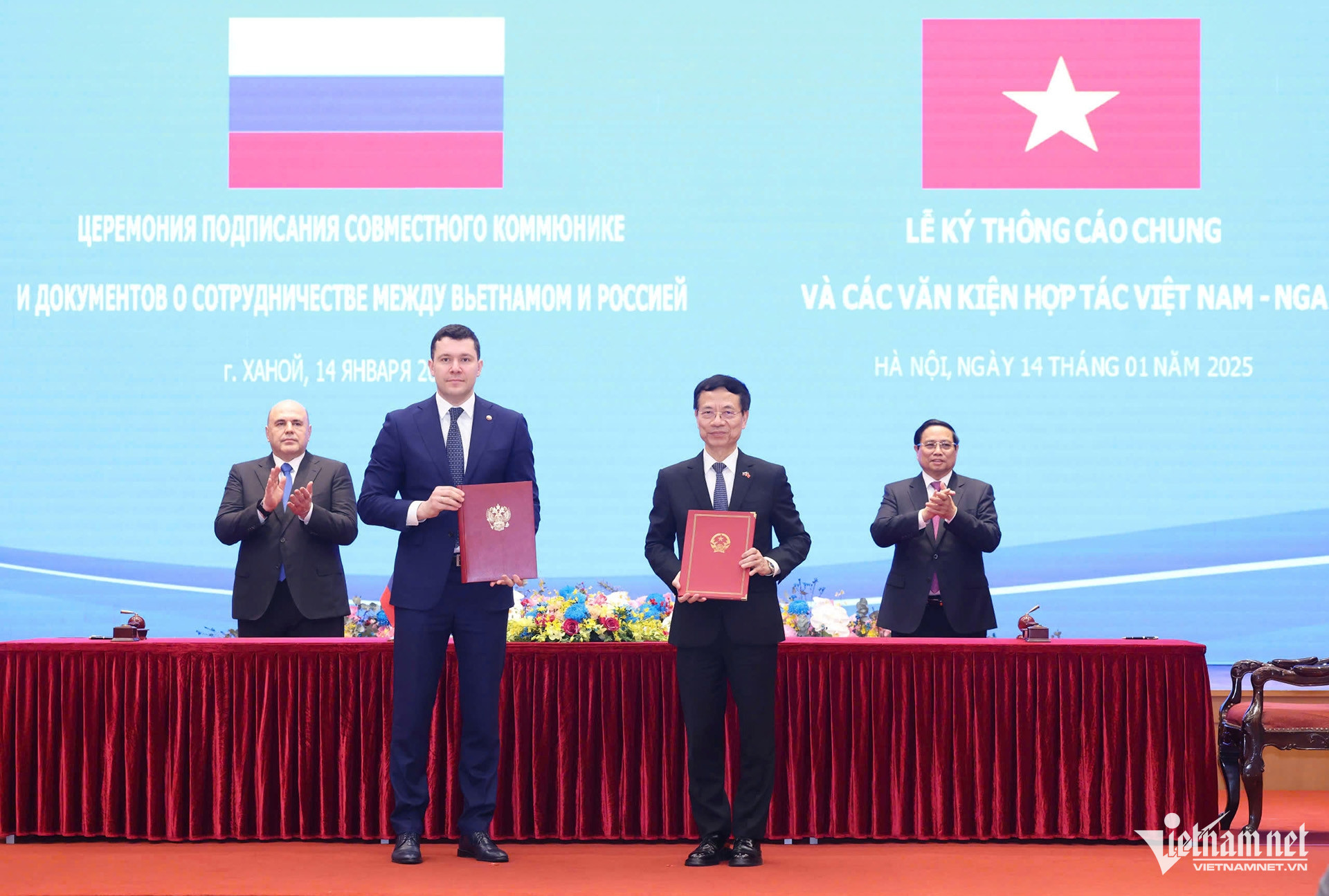 Sau hội đàm, Thủ tướng Phạm Minh Chính và Thủ tướng Mikhail Mishustin đã ký thông cáo chung về kết quả chuyến thăm và cùng chứng kiến lễ ký kết một số văn kiện hợp tác...