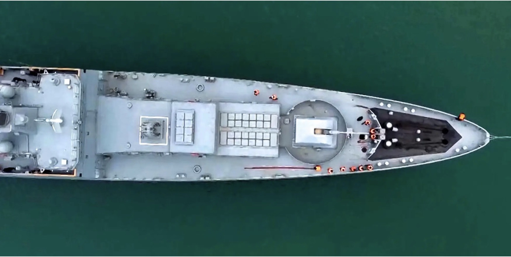 Theo tờ Insider, nhà nghiên cứu hải quân HI Sutton đã phát hiện được lớp sơn mới của tàu khu trục Đô đốc Essen của Nga qua ảnh vệ tinh chụp ở cảng Sevastopol, Crưm ngày 22/6. Ảnh chụp những ngày sau đó cũng cho thấy 3 tàu chiến khác của Nga được sơn sọc tương tự. Ông Sutton nói, bốn tàu trên đều mang tên lửa hành trình Kalibr.
