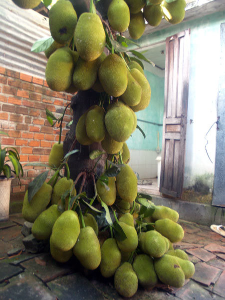 Số quả ở phần cành nhánh có thưa hơn, nhưng không dưới 60 quả. Điều thích thú khi nhìn cây mít là tất cả các quả phát triển đều nhau, không bị eo, lép.