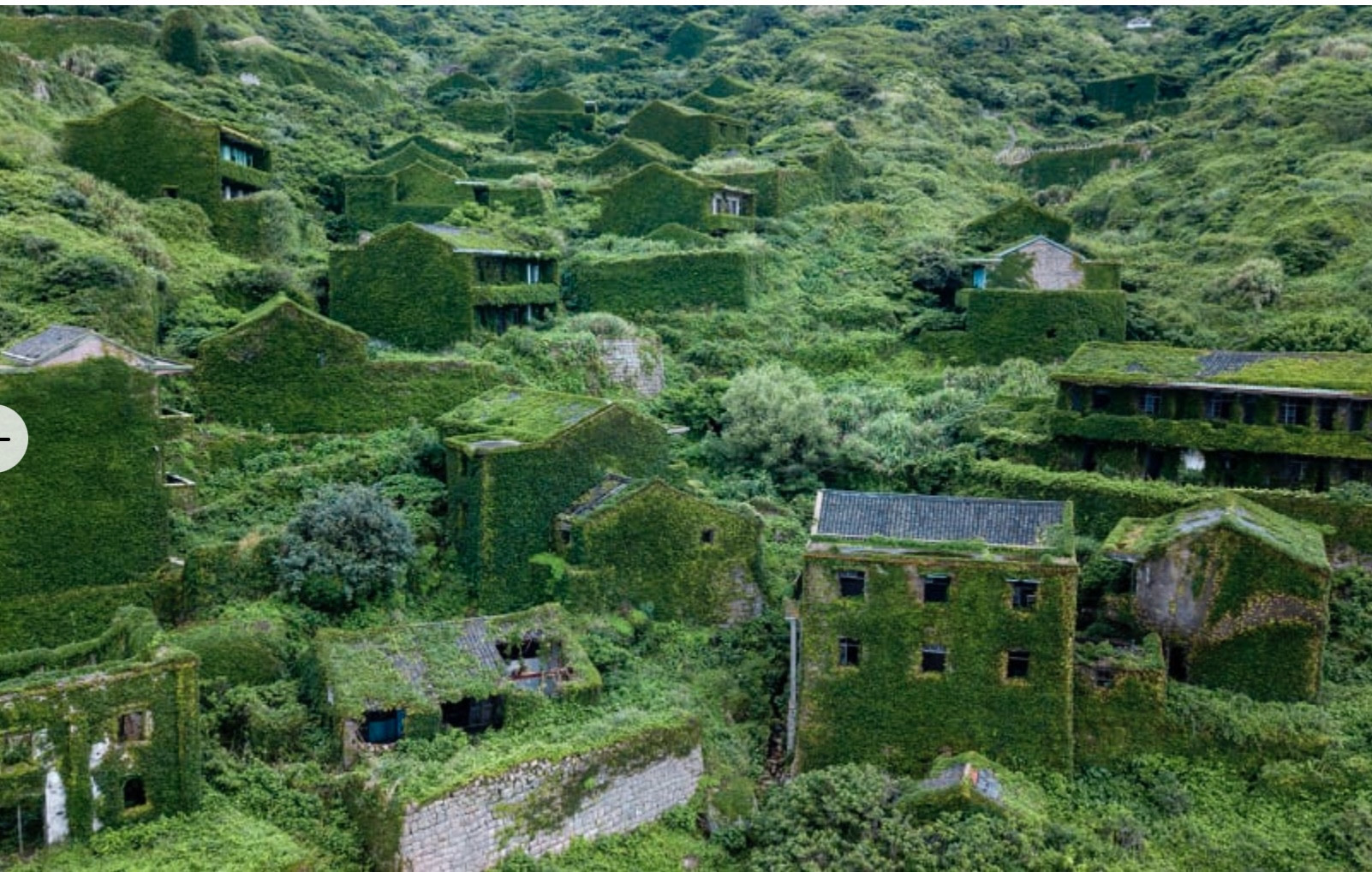 Theo hãng tin CNN, Houtouwan từng là một làng chài trù phú, với hơn 3.000 dân vào những năm 1980. Tuy nhiên, do vị trí xa xôi và khó tiếp cận, cư dân ở đây bắt đầu rời đi vào những năm 1990. Sau nhiều thập niên bị bỏ hoang, các ngôi nhà trống ở ngôi làng tựa vào núi và nhìn ra biển đã bị cây leo phủ kín.