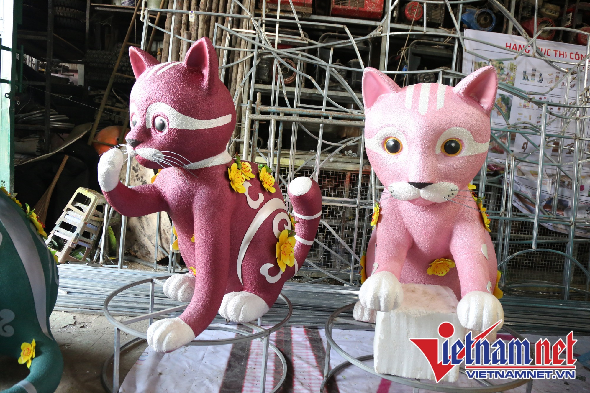 Nghệ nhân Văn Tòng cho biết, năm nay công ty được giao chế tác, tạo hình (3D) 32 chú mèo - linh vật cho đường hoa Nguyễn Huệ. Điểm độc đáo của năm nay là hình ảnh linh vật mèo được cách điệu, thể hiện đa dạng về kích thước.