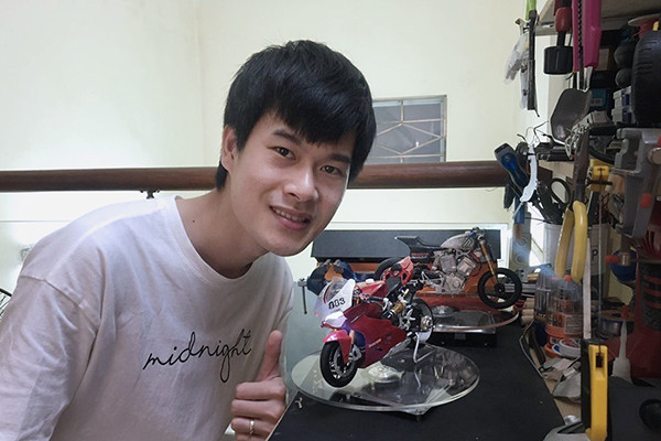 Dù khá bận rộn với công việc chính là tạo mẫu tóc nhưng anh Nguyễn Văn Long, nổi tiếng với biệt danh Long Ducati (quê ở TP Hạ Long, Quảng Ninh, chủ hiệu tóc tại Hà Nội) vẫn luôn dành thời gian để theo đuổi đam mê chế tạo môtô mô hình. Đến nay, đã có rất nhiều mô hình, "bản sao" những chiếc mô tô nổi tiếng trên thế giới được ra đời từ bàn tay tài hoa của anh.