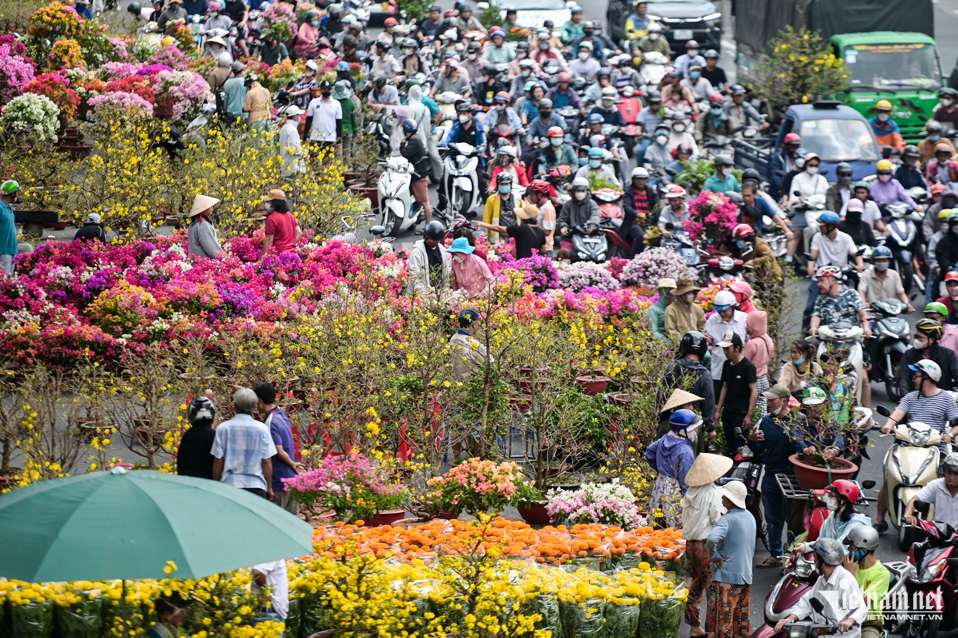 Trưa nay (28/1, tức 29 Tết), không khí tại chợ hoa Công viên Gia Định trở nên khẩn trương khi nhiều tiểu thương phải trả mặt bằng trước 12h trưa. Lúc này, rất đông người dân chờ đến ngày cuối cùng mới đi mua hoa với tâm lý sẽ được hưởng giá rẻ.