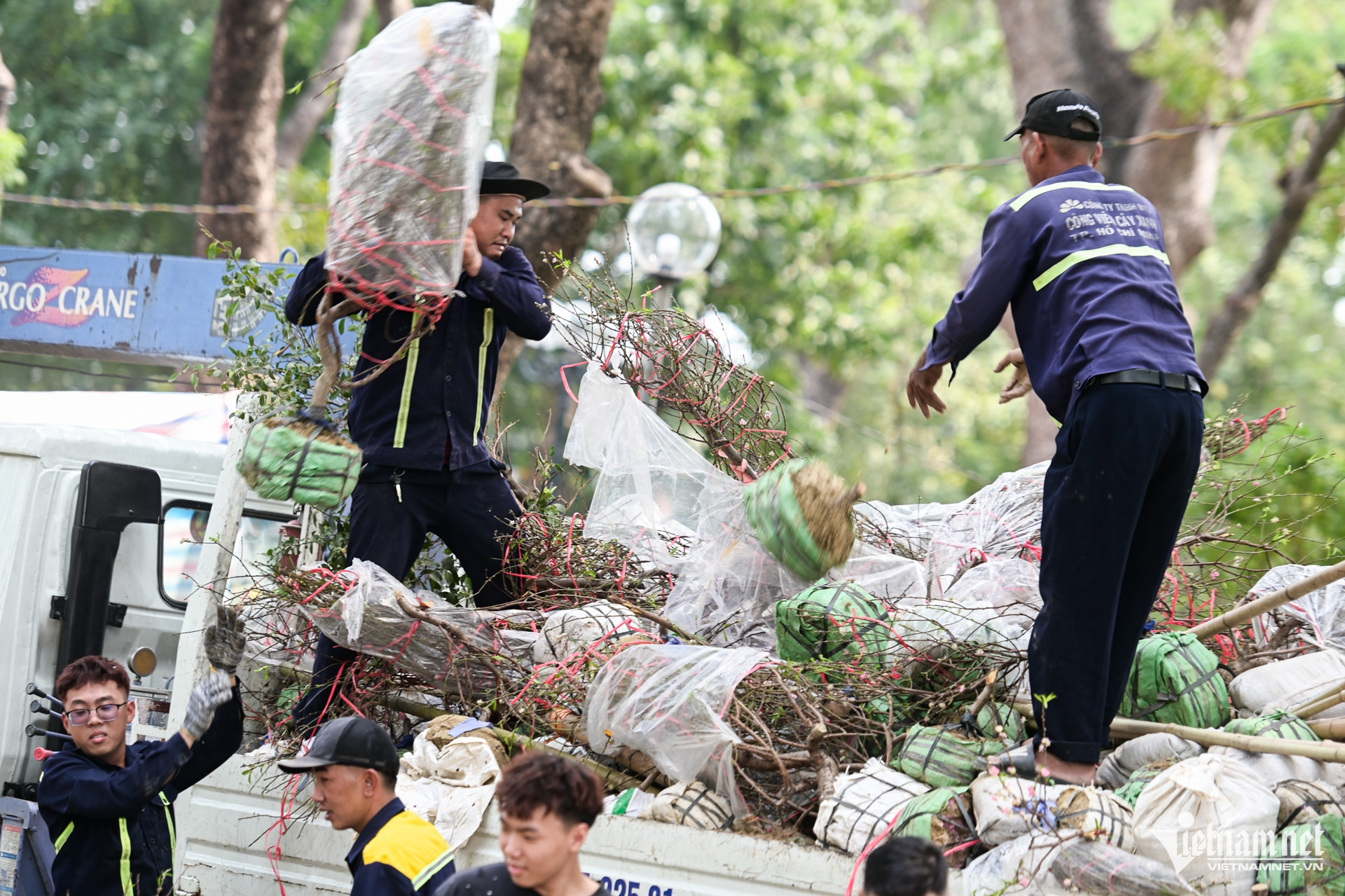 Hàng chục gốc đào vận chuyển từ Hà Nội vào được công nhân vệ sinh đem vứt bỏ để trả mặt bằng cho công viên đón Tết.