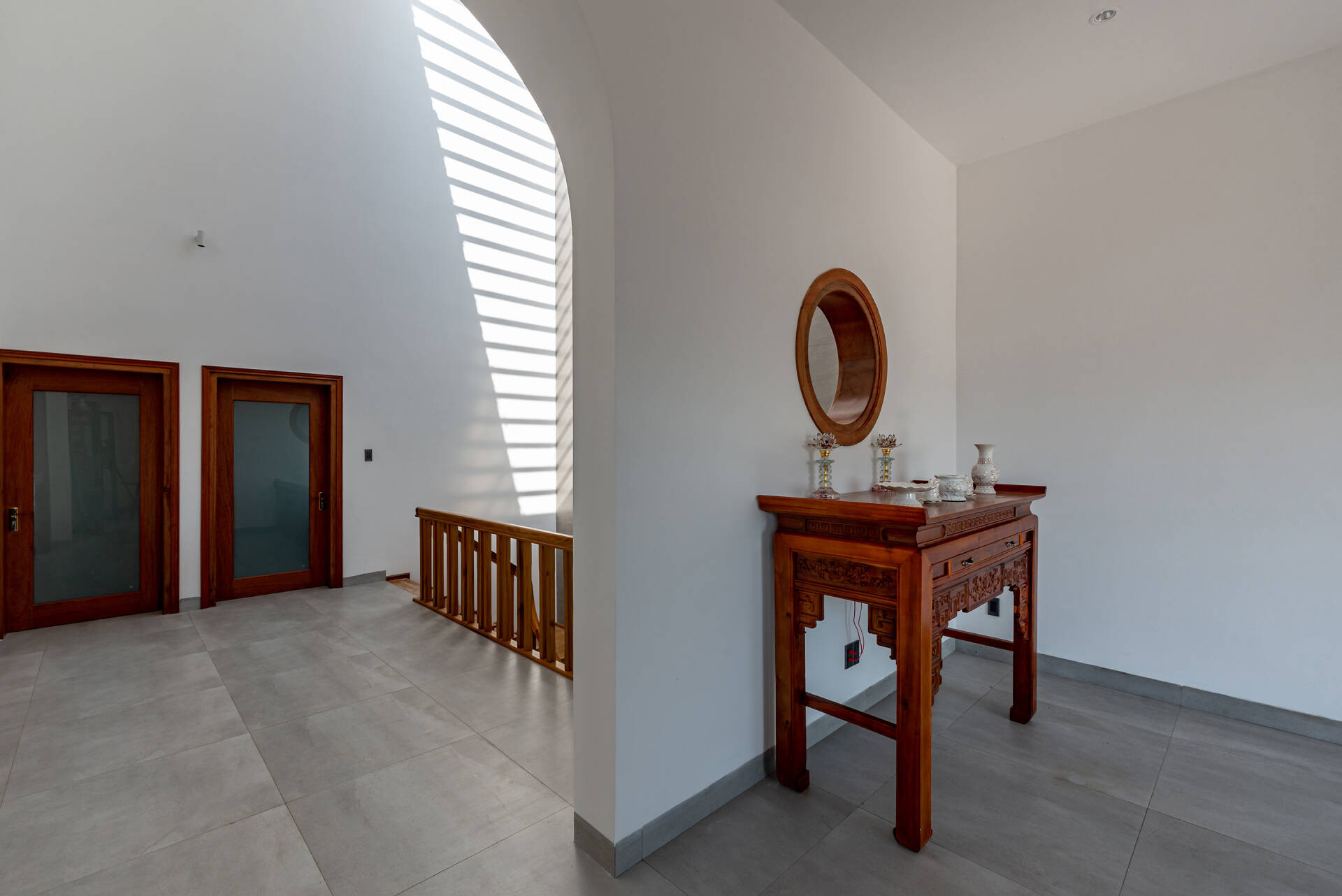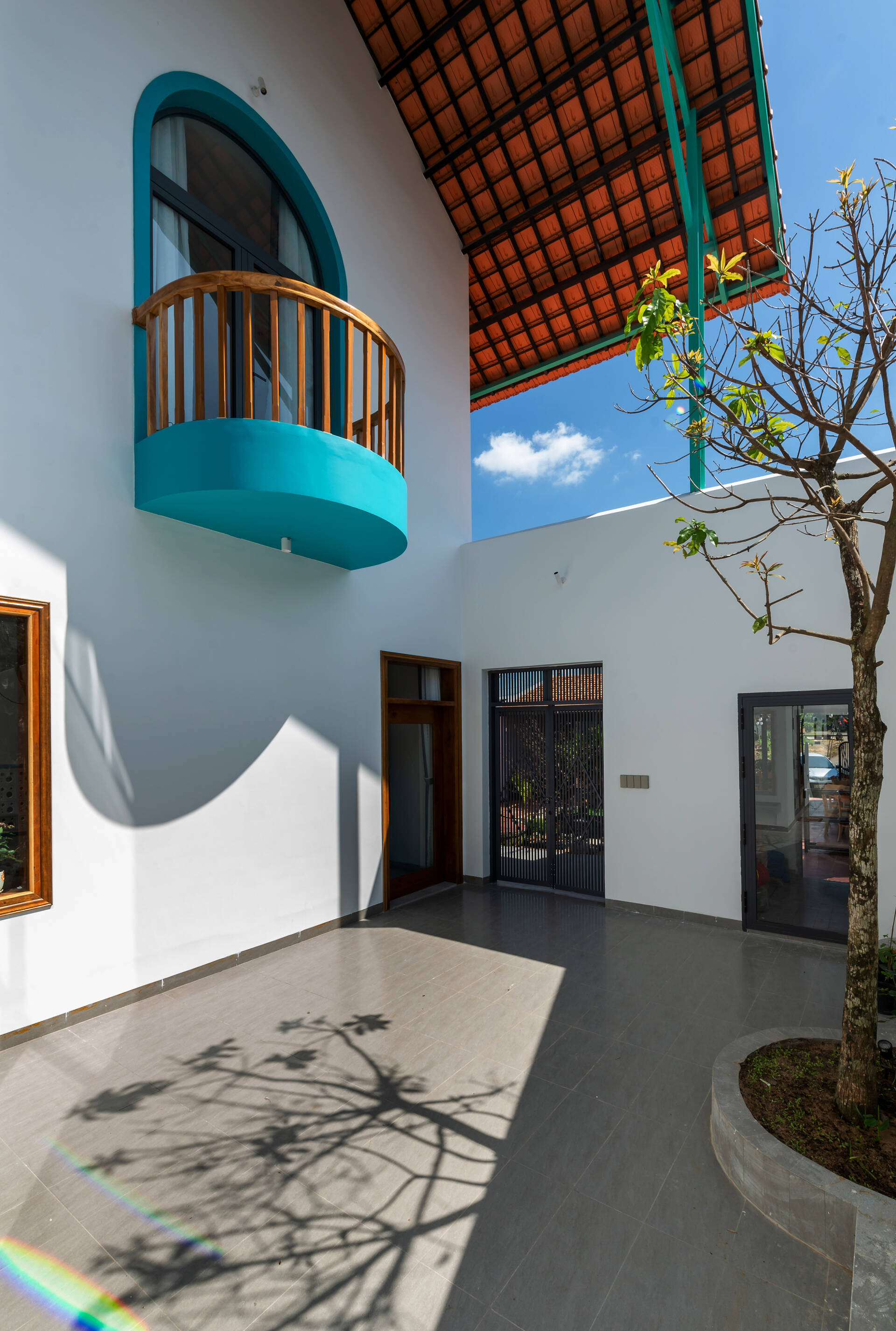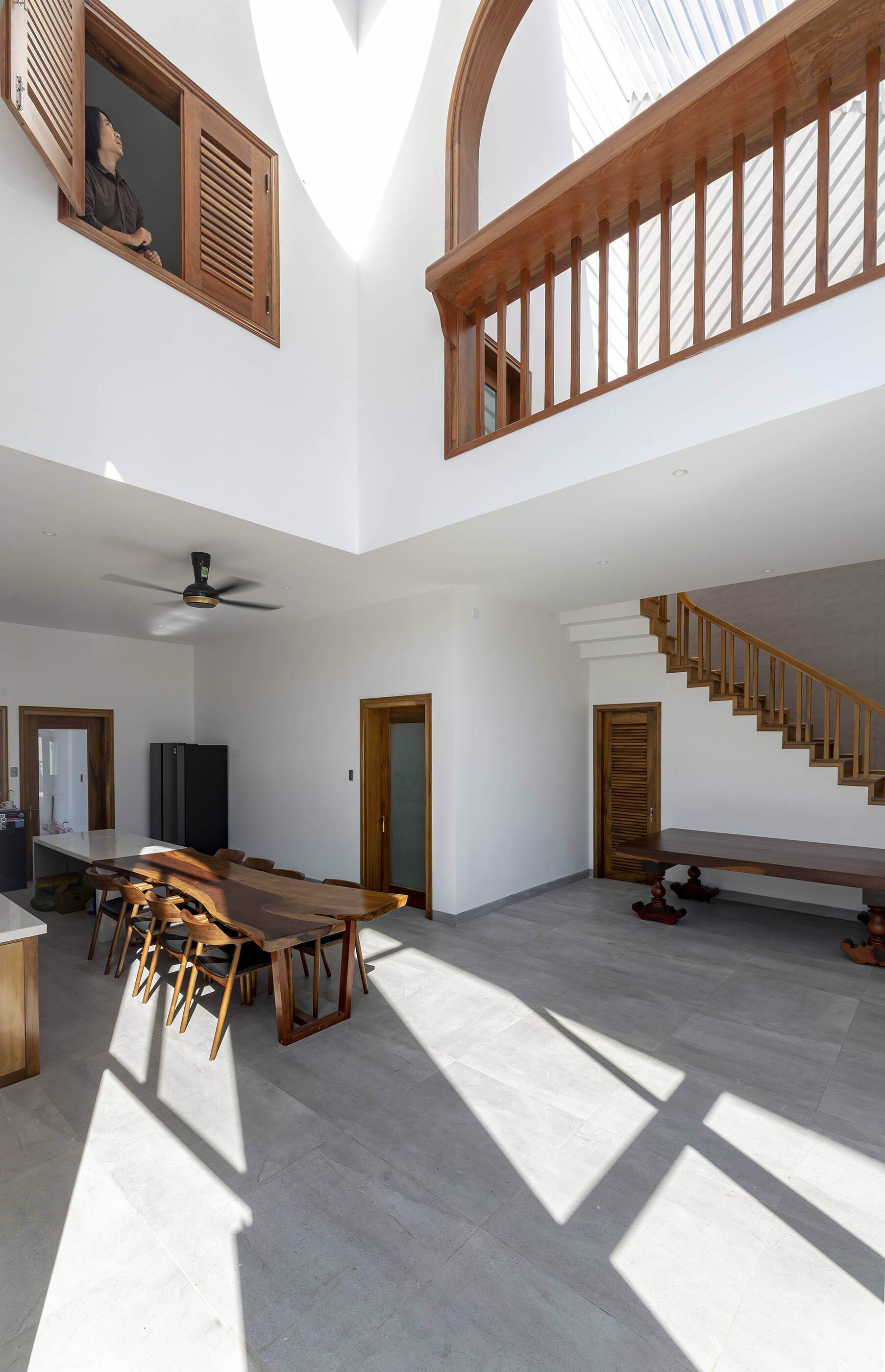 Khoảng sân trong tạo khoảng trống thông gió và đối lưu khí cho ngôi nhà.Phòng thờ ở tầng cao nhất, nằm tại vị trí yên tĩnh, mang tính linh thiêng và phong thủy.