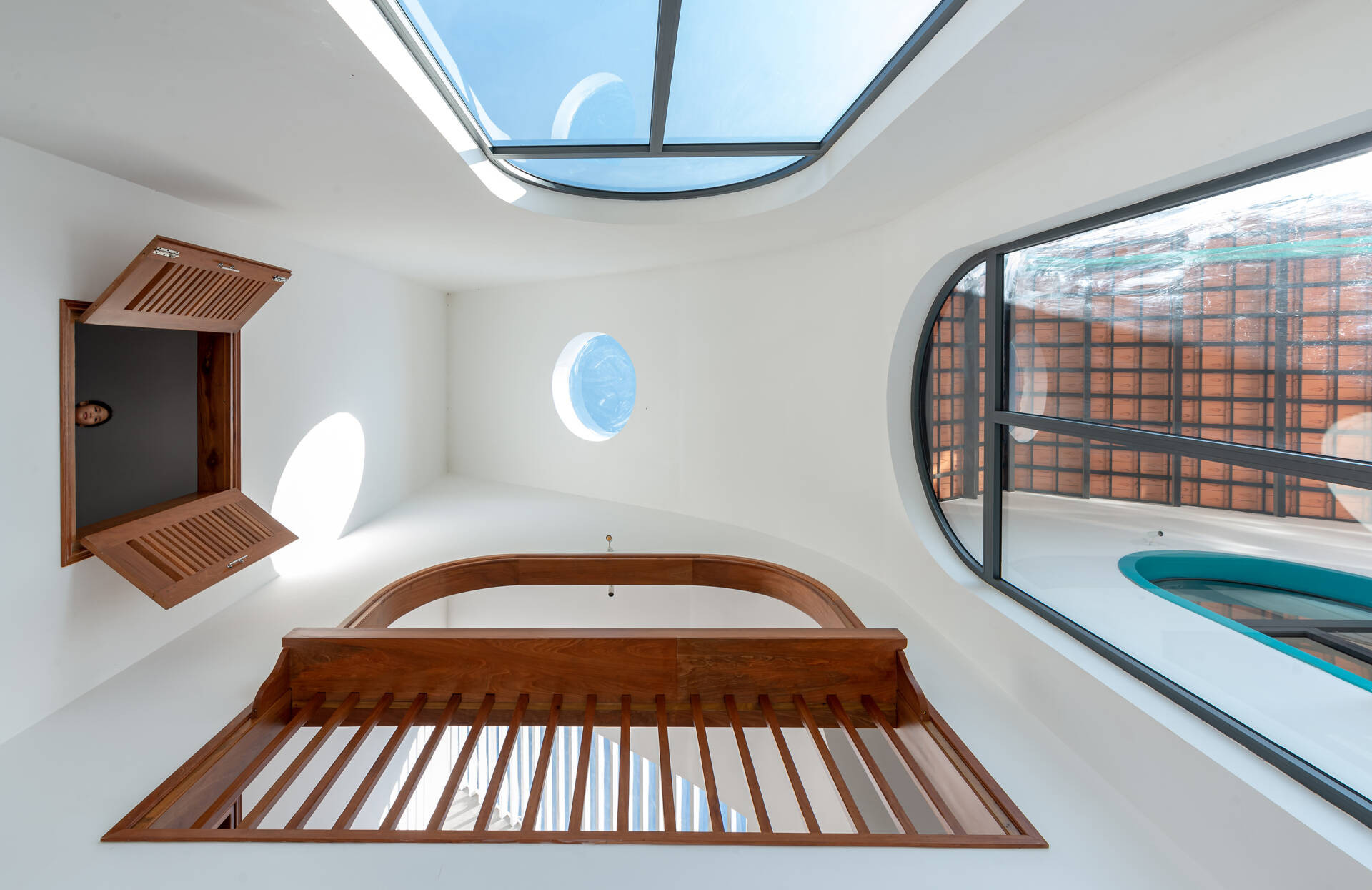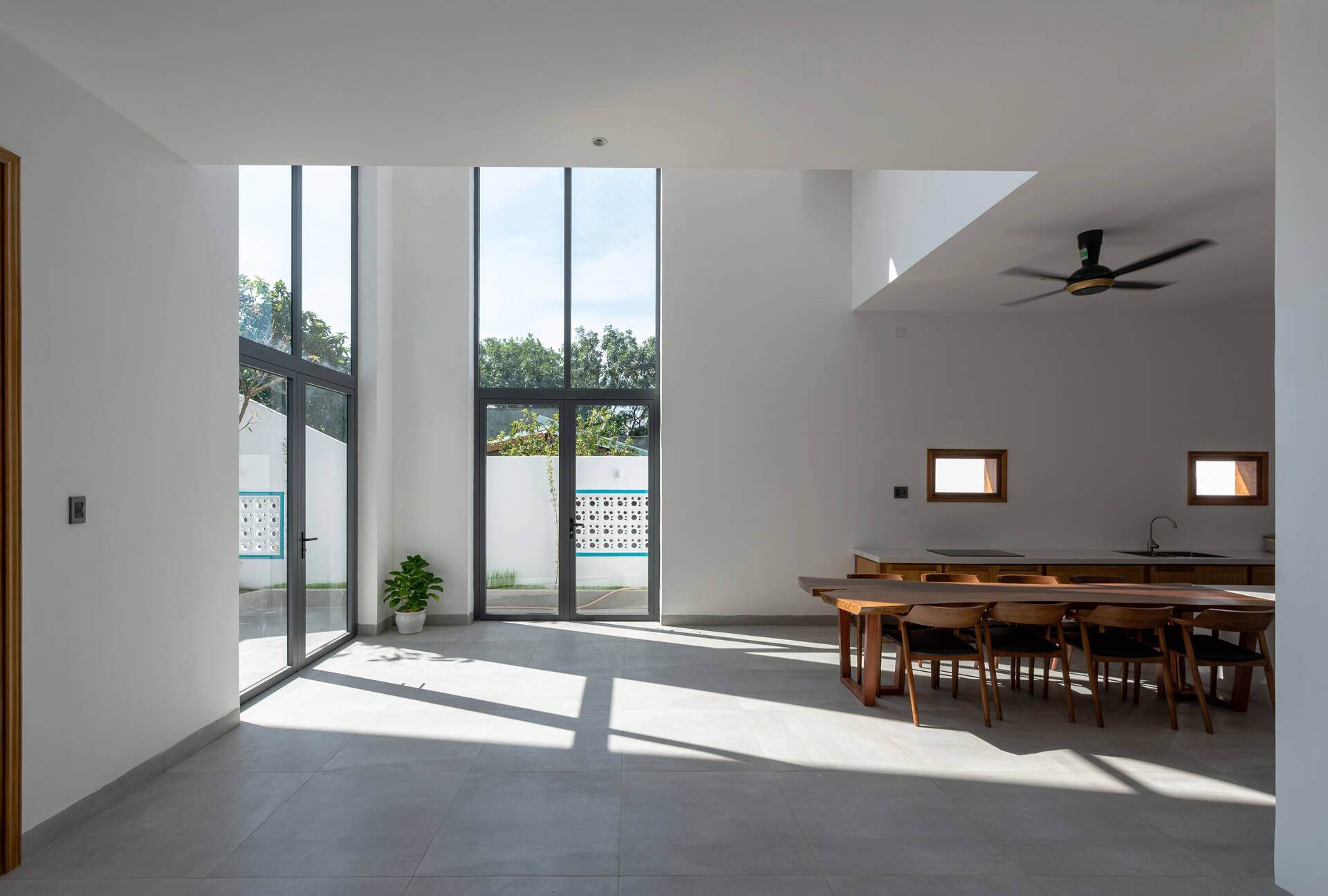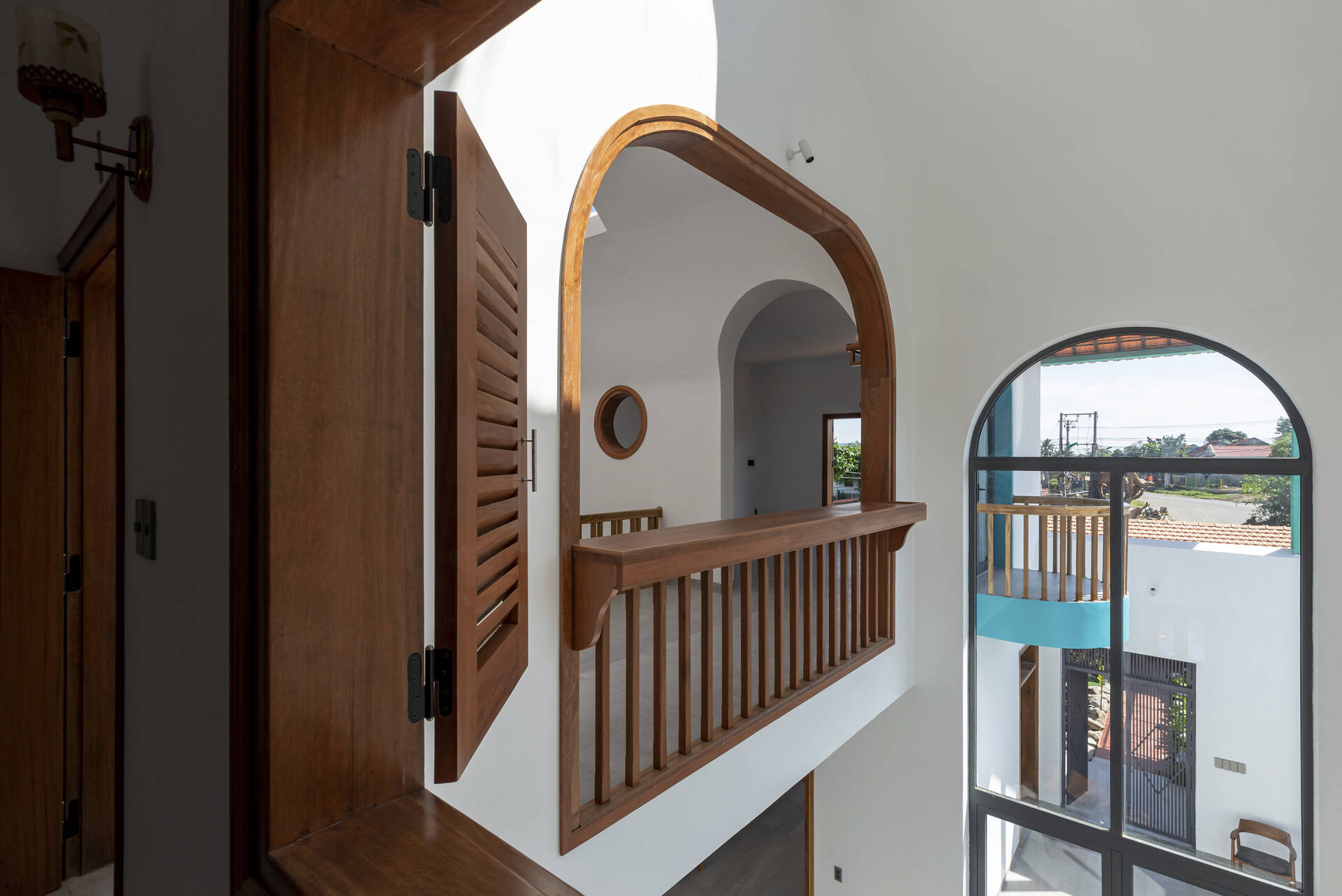 Khoảng sân trong tạo khoảng trống thông gió và đối lưu khí cho ngôi nhà.Phòng thờ ở tầng cao nhất, nằm tại vị trí yên tĩnh, mang tính linh thiêng và phong thủy.