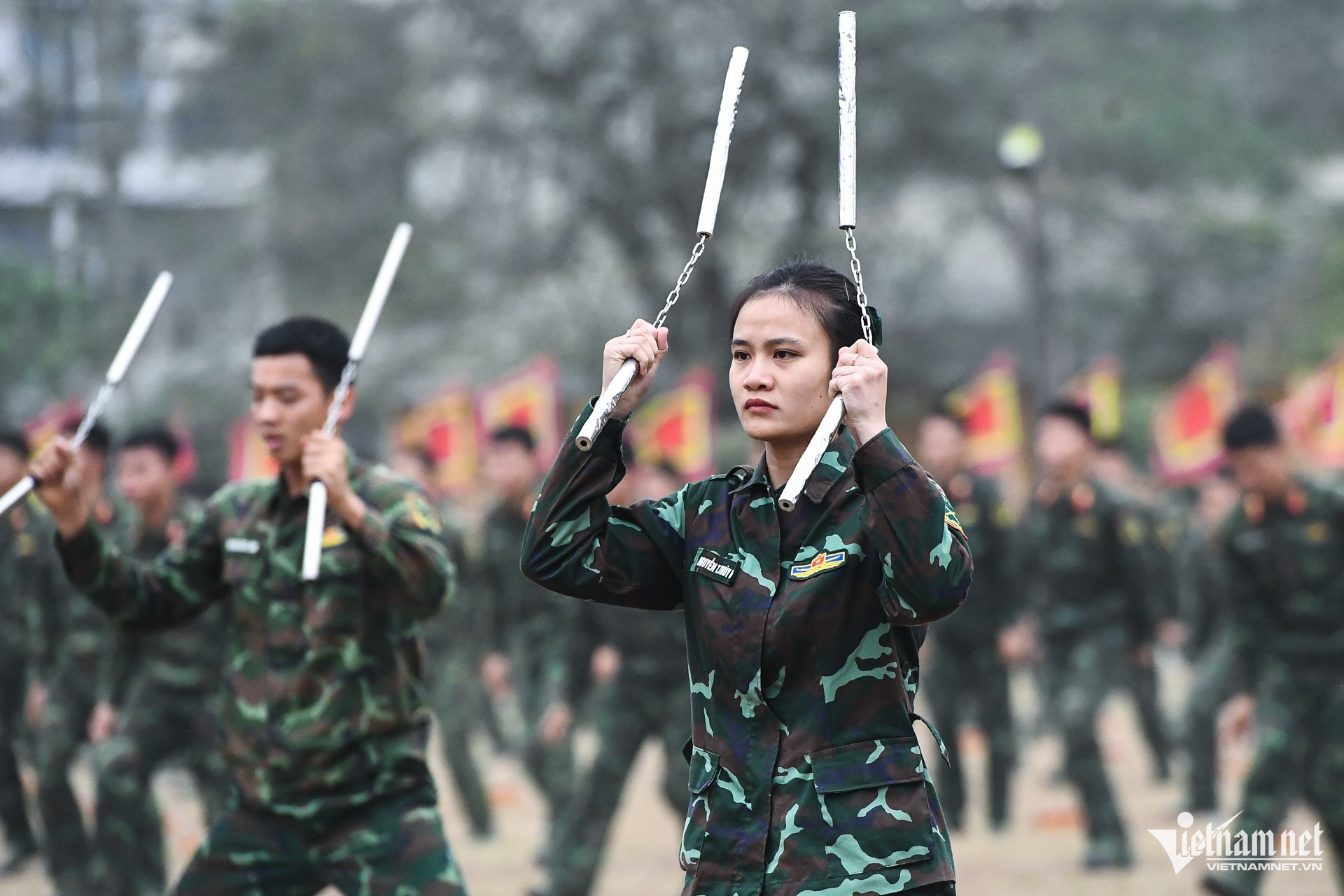 Trong đội ngũ hàng nghìn người hăng say luyện tập lần này chỉ có 10 gương mặt nữ hiếm hoi có mặt. Tuy vậy, những "bông hồng thép" không hề lép về mà luôn tạo ra những điểm nhấn.