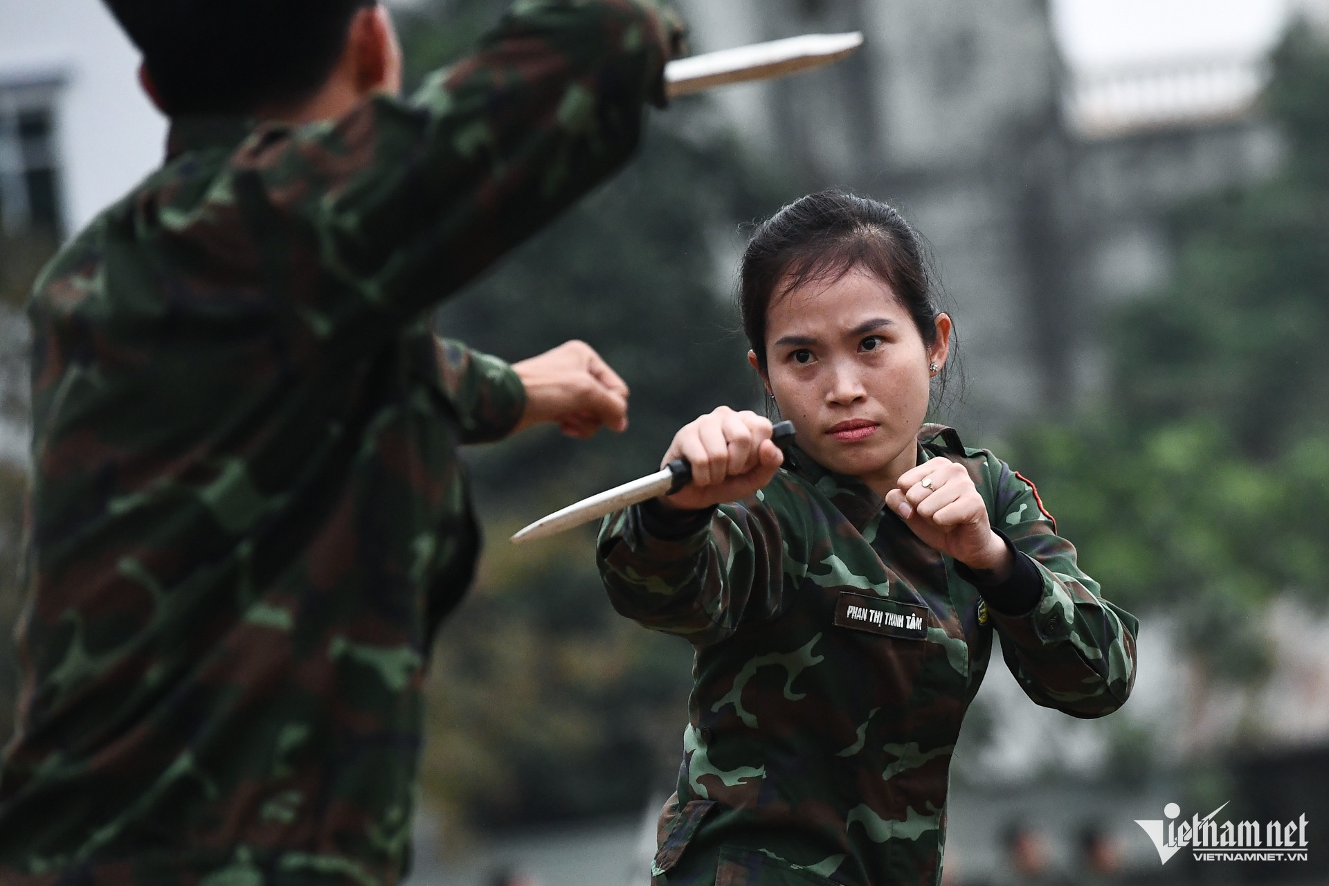 Dù là nữ quân nhân dày dặn kinh nghiệm, kỹ thuật tốt qua nhiều năm huấn luyện nhưng khi bước vào phần biểu diễn của mình, nữ Đại úy luôn tập trung cao độ và làm việc hết mình. Từng động tác của chị dứt khoát, biểu cảm gương mặt cương nghị, chuyên nghiệp khiến những chiến sĩ trẻ phải trầm trồ khen ngợi.