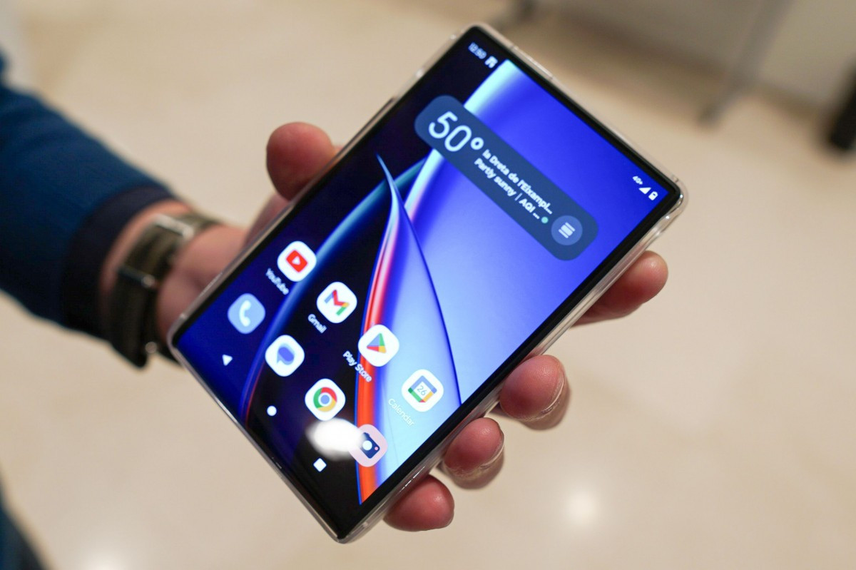 Phần màn hình khi cuộn lại ở mặt lưng sẽ hoạt động như một màn phụ hiển thị các thông tin thời tiết, các thông báo, ngày giờ, thời lượng pin,...