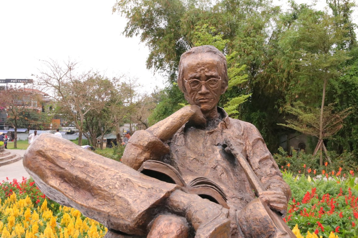 Tượng nghệ thuật cố nhạc sĩ Trịnh Công Sơn là tác phẩm điêu khắc nghệ thuật của cố điêu khắc gia Trương Đình Quế do một doanh nhân tài trợ để thực hiện, sau đó hiến tặng cho TP. Huế. Ảnh: Luân Nguyễn |