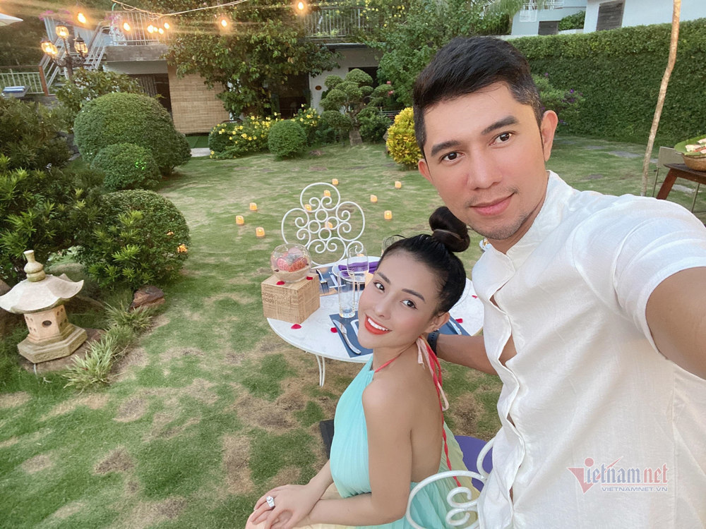 “Tôi và Ngân quen nhau đã lâu, qua nhiều thăng trầm. Khi “thăng”, chúng tôi đều thấy đó là thời điểm thích hợp để cầu hôn. Những lúc "trầm" như cãi vã, scandal ngoài ý muốn, tôi hoặc Ngân có lỗi với đối phương… chúng tôi đều thấy không nên ràng buộc nhau bằng kết hôn. Vì thế, tôi không biết khi nào là thời điểm chín muồi để cầu hôn nữa. Chúng tôi chưa từng xem khoảng cách tuổi tác hay chuyện “tình chú cháu” là vấn đề. Không có công thức nào cho thời điểm kết hôn cả. Đơn giản là tôi thấy thích hợp, muốn làm cái gì đó lãng mạn cho bạn ấy vui thì tôi trao nhẫn nhanh gọn, không cầu kỳ”, anh tâm sự.