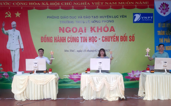 Năm học 2021 - 2022, Trường THCS Lê Hồng Phong là một trong những ngôi trường đầu tiên của huyện Lục Yên tiên phong tích cực CĐS với phương châm "Sử dụng thành thạo các phần mền quản lý, các học liệu điện tử”.