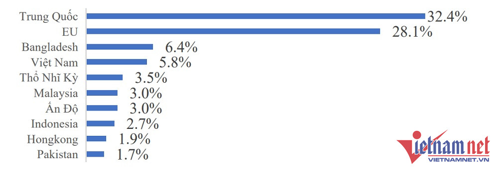 Theo báo cáo “Tổng quan thị trường dệt may Việt Nam 2017-2022” do STS Group vừa công bố, giá trị thị trường dệt may toàn cầu đạt 573,22 tỷ USD năm 2022. Trong đó, Trung Quốc, Việt Nam, Ấn Độ, Bangladesh, Thổ Nhĩ Kỳ là các quốc giá xuất khẩu dệt may lớn nhất thế giới với tỷ trọng chiếm hơn 55% giá trị xuất khẩu dệt may thế giới.