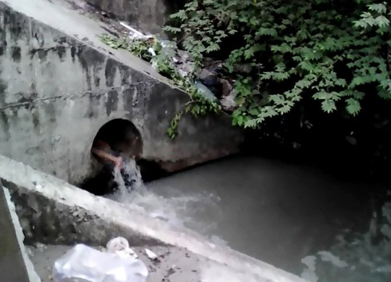 Cô gái ngáo đá tắm nước thải rồi chui vào cống ngủ