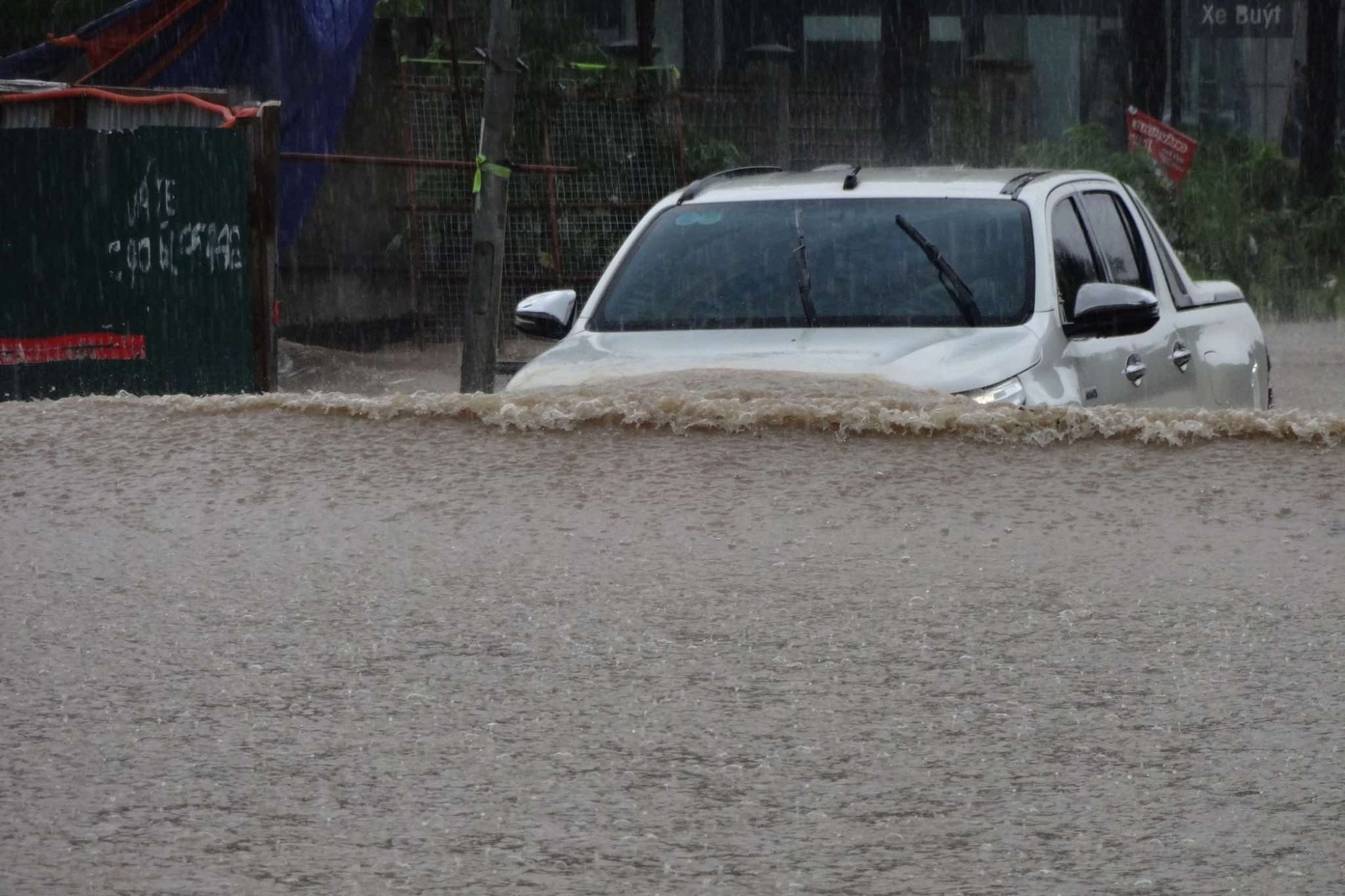 Cảnh kỳ lạ ở Hà Nội, trời nắng ráo, ô tô vẫn bì bõm 'bơi' trên đường Võ Chí Công