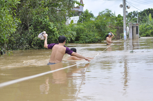 Ngập khắp nơi, dân Đồng Nai bám dây về nhà