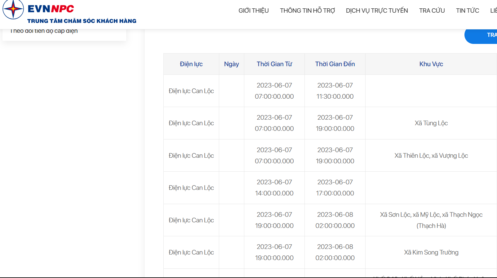 Tỉnh Hà Tĩnh cũng có nhiều khu vực bị cắt điện trong ngày 7/6. Thời gian cắt điện kéo dài nhiều tiếng, có nơi đến tận 2h ngày 8/6 mới có điện.