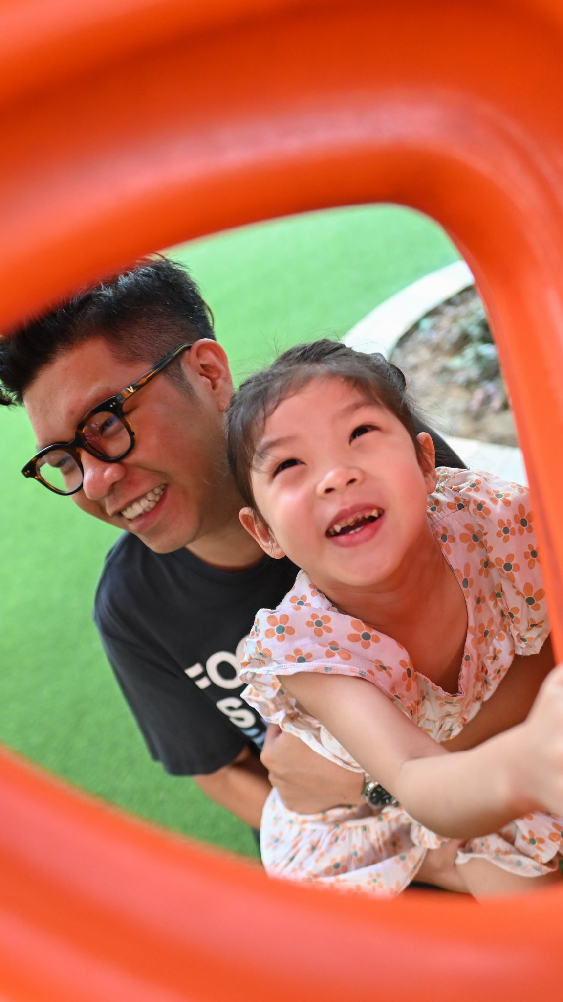 Cứ 17h, đám trẻ trong khu nhà lại tập trung cả dưới sân, cùng nhau vui chơi nô nức. Bé Na cũng nhanh chóng hòa vào những trò chơi leo trèo, cầu trượt như các bạn. Phía sau em luôn có bố theo cùng.