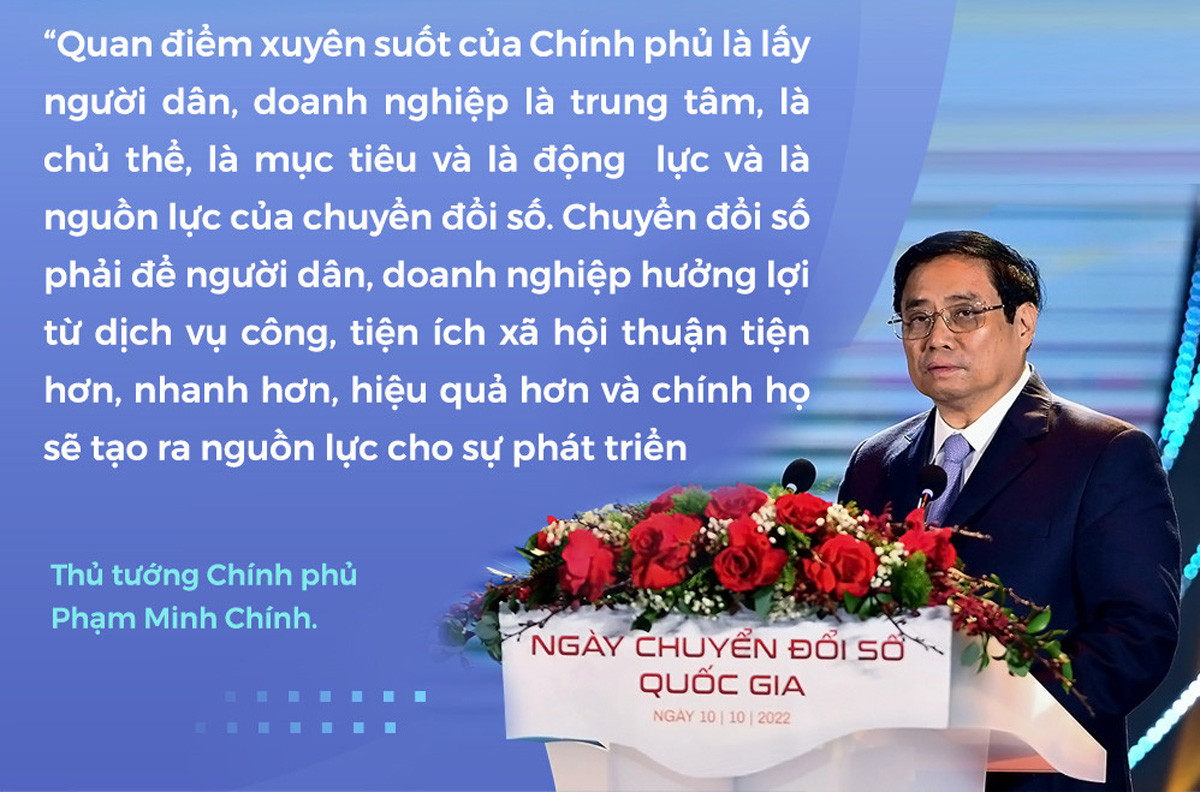 Trong phát biểu tại chương trình chào mừng Ngày Chuyển đổi số quốc gia năm 2022 chủ đề "Chuyển đổi số giải quyết các vấn đề của xã hội vì một cuộc sống tốt đẹp hơn cho người dân", Ủy viên Bộ Chính trị, Thủ tướng Chính phủ Phạm Minh Chính, Chủ tịch Ủy ban quốc gia về chuyển đổi số nhận định, đây là sự kiện quan trọng được tổ chức lần đầu tiên, thể hiện quyết tâm của Đảng, Nhà nước, của cả hệ thống chính trị, cộng đồng doanh nghiệp và nhân dân cả nước, tiếp tục đẩy mạnh chuyển đổi số quốc gia, phát triển nền kinh tế số, xã hội số và công dân số.
