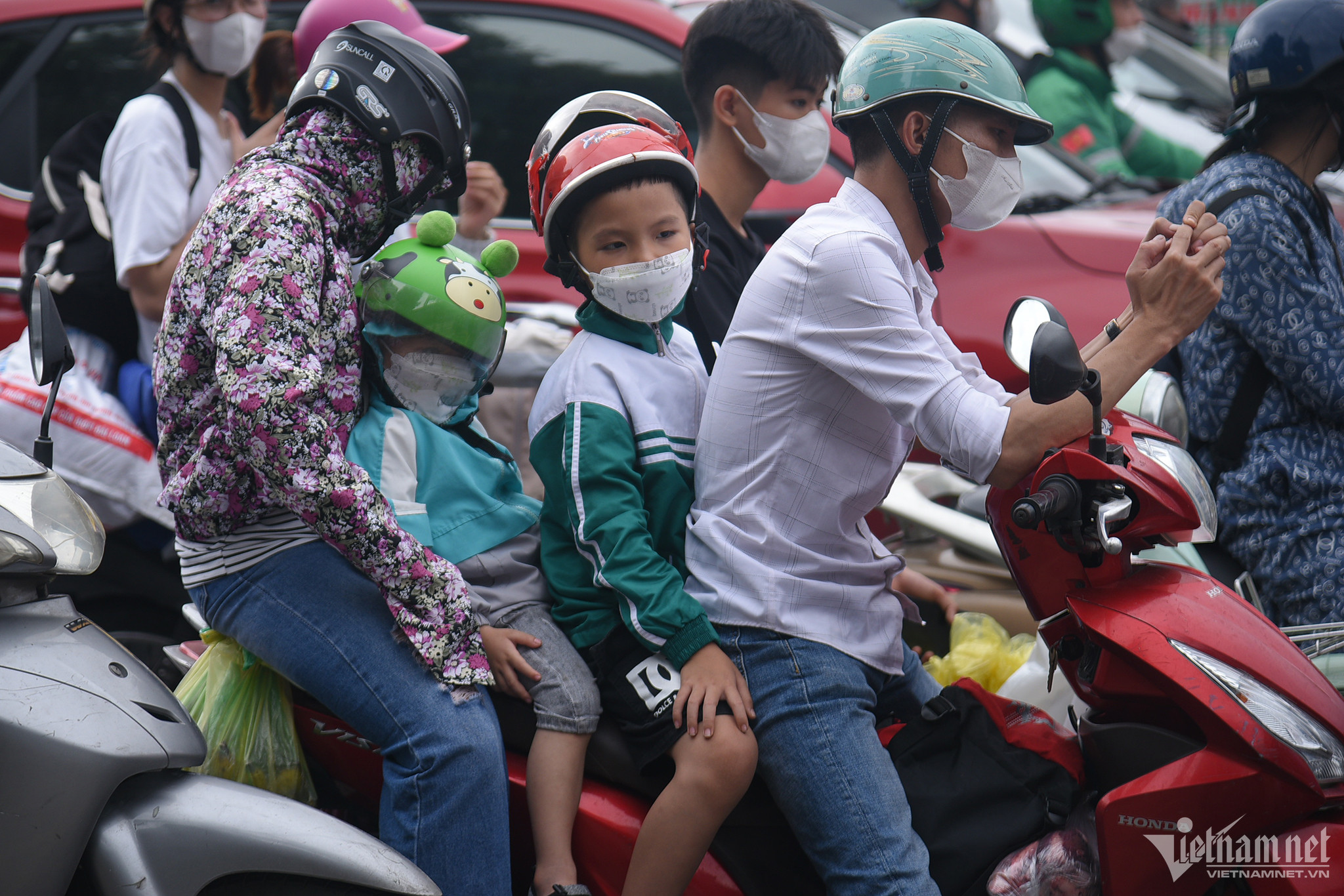 Tại ngã tư khu vực trước bến xe Nước Ngầm, lượng xe máy từ các huyện Phú Xuyên, Thường Tín... vào trung tâm TP Hà Nội khá đông đúc.