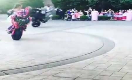 Cô dâu bốc đầu mô tô phân khối lớn trong ngày cưới