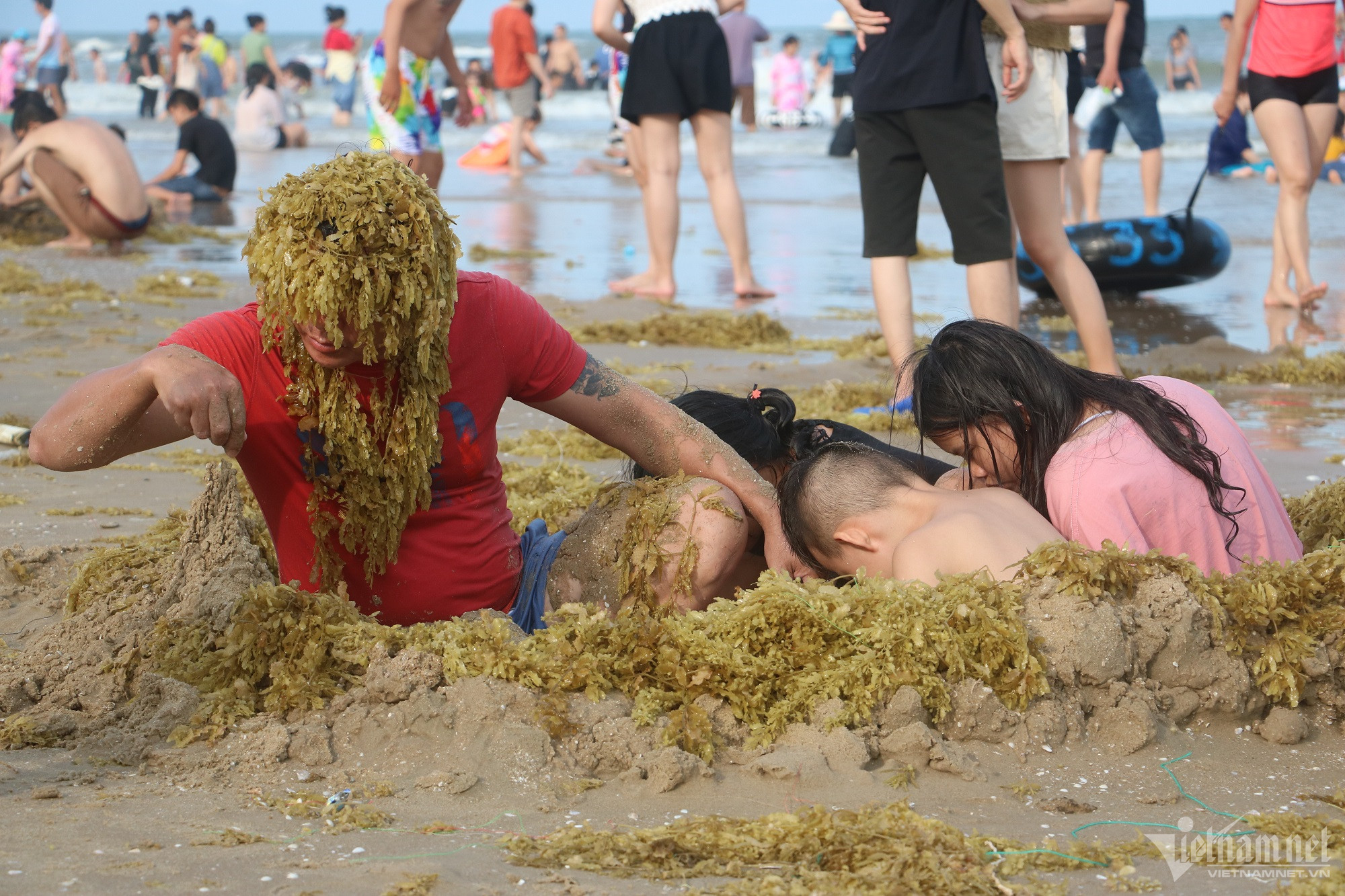 Du khách thích thú vui chơi, hoá trang cùng rong biển