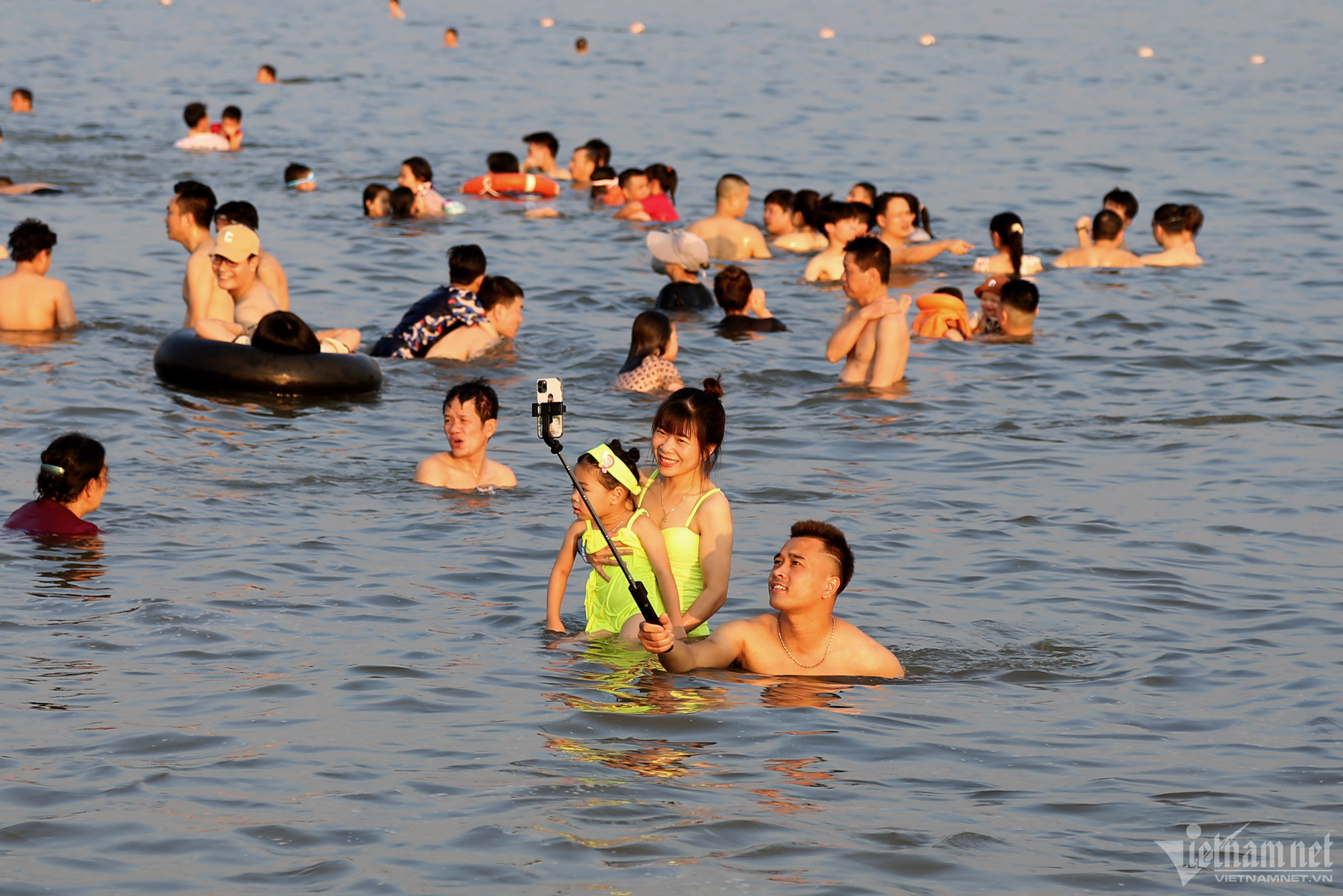 Hôm nay (1/9), ghi nhận tại bãi tắm Bãi Cháy, TP Hạ Long, bãi biển trải dài hơn 3km ken đặc người.