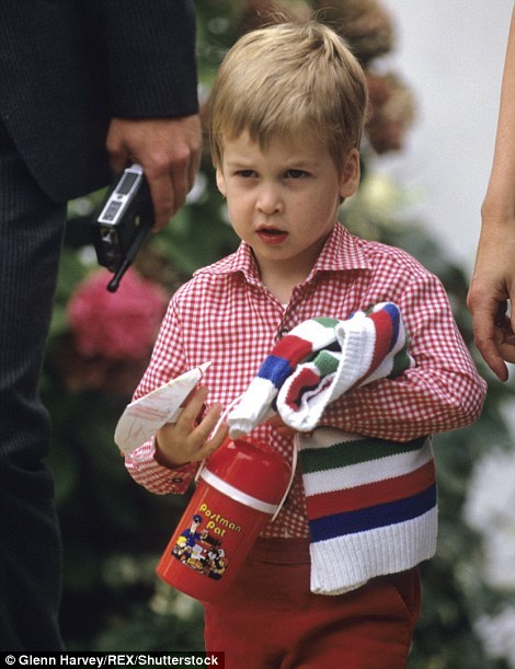 | Hoàng tử William trong ngày đầu tiên tới trường mầm non năm 1985 |