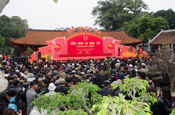 Chen chân ở Văn Miếu trong Ngày thơ Việt Nam