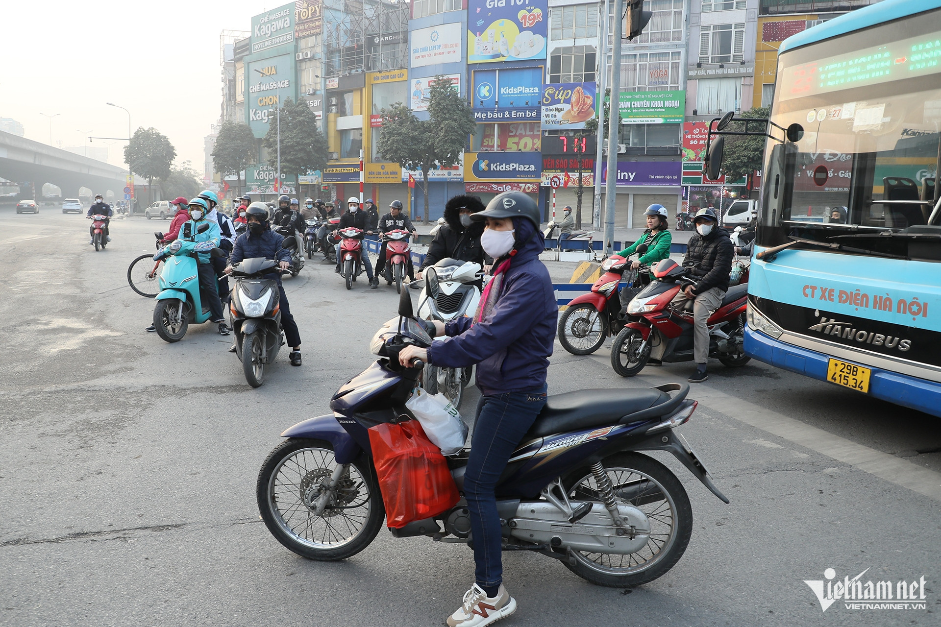 8h, tại ngã tư Nguyễn Xiển - Nguyễn Trãi (quận Thanh Xuân), khi lưu lượng phương tiện tăng cao, xuất hiện tình trạng người tham gia giao thông lấn vạch dừng, cố tình đi ngược chiều.