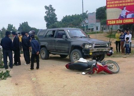 Thời điểm trên, xe máy BKS 37Z2 – 6013 chở 3 chạy theo tuyến đường liên xã, đến đoạn ngã tư giao với đường Hồ Chí Minh, do thiếu quan sát đã tông trực diện ô tô con BKS 29L 1981.