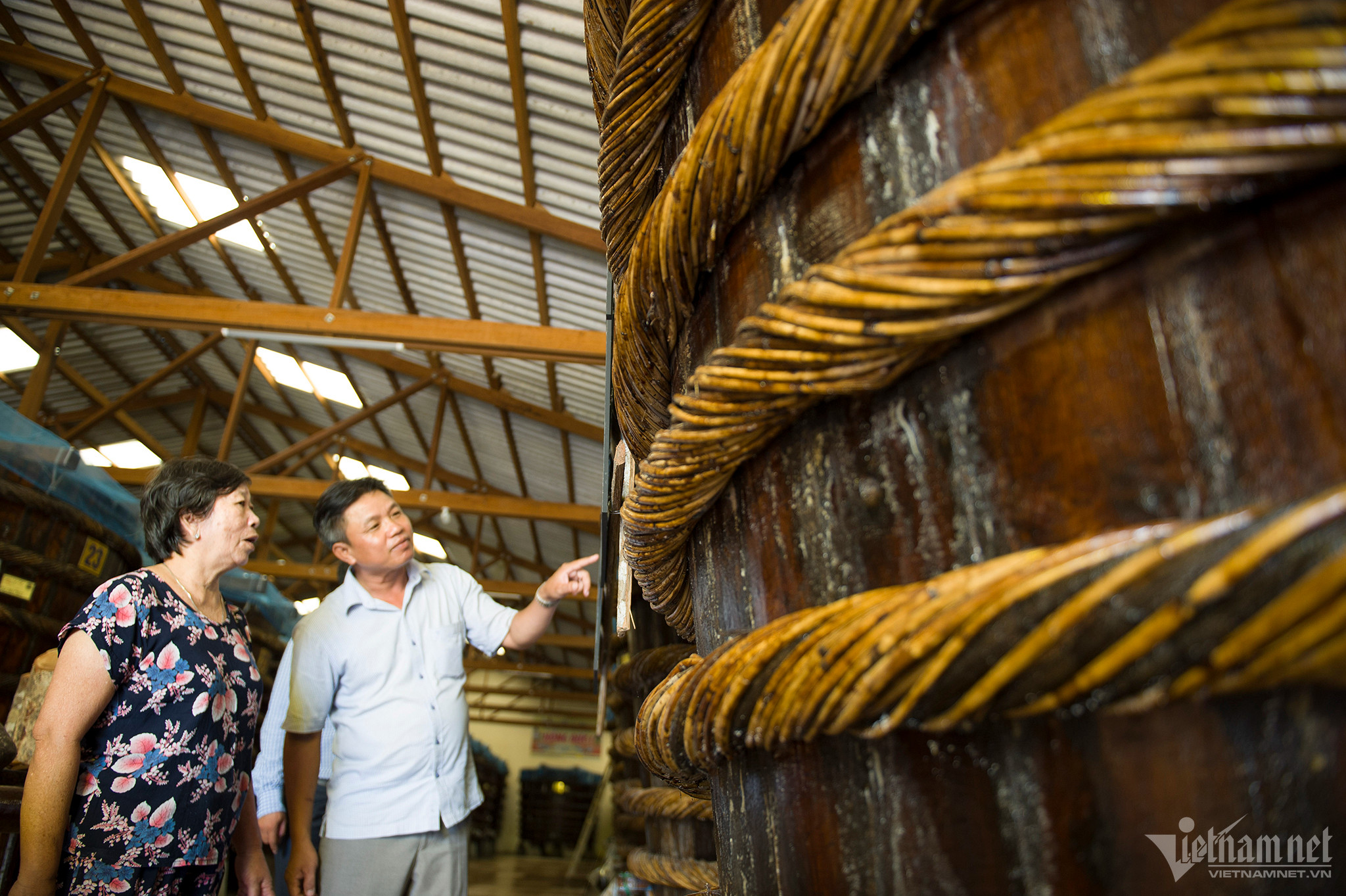 Thùng gỗ ủ chượp nước mắm ở Phú Quốc được những người thợ chế tác đặc trưng theo nguyên tắc ghép ván gỗ, gia cố bằng dây mây, có kích thước lớn để chứa được từ 12 - 15 tấn cá cơm ướp muối.