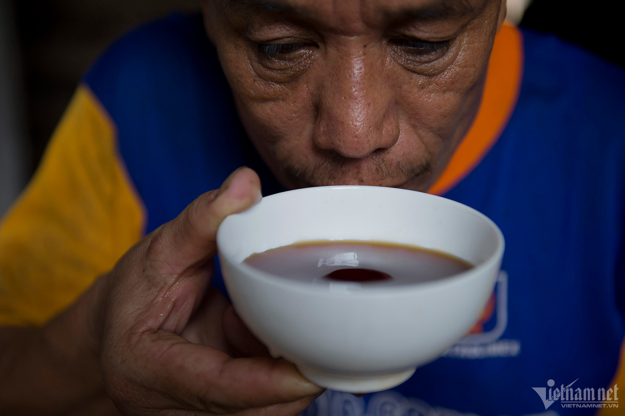 Người làm nước mắm Phú Quốc cho cá cơm đã ướp muối vào thùng ủ chượp. Thời gian ủ từ 12 - 15 tháng sẽ cho ra nước mắm thành phẩm.