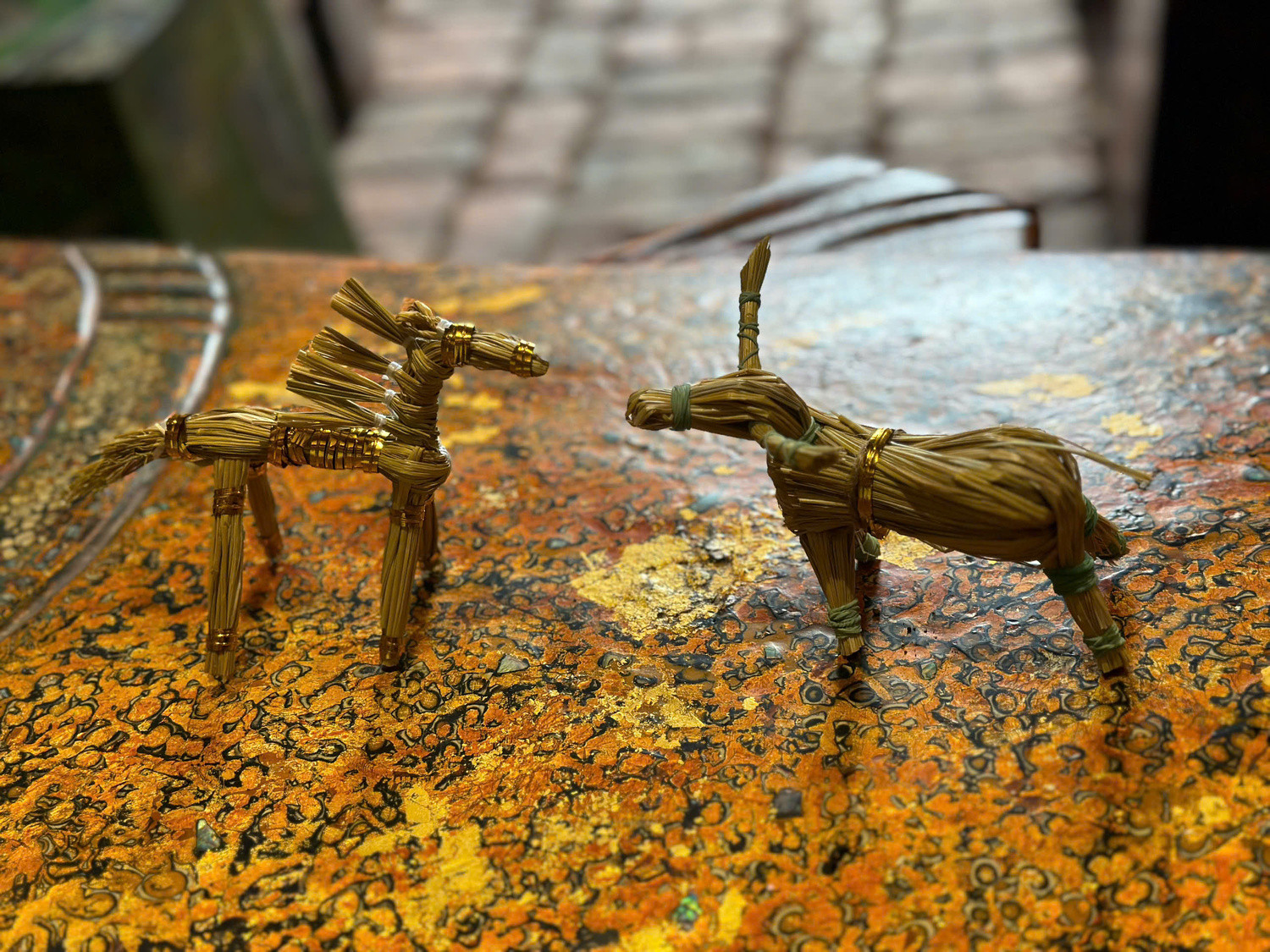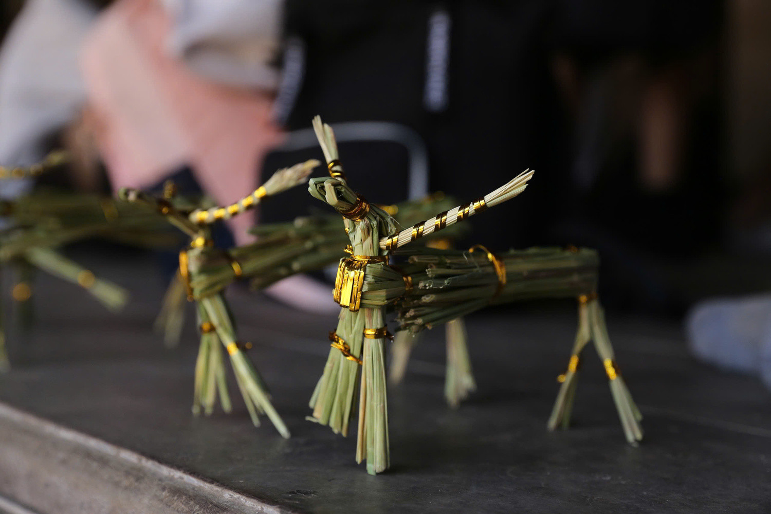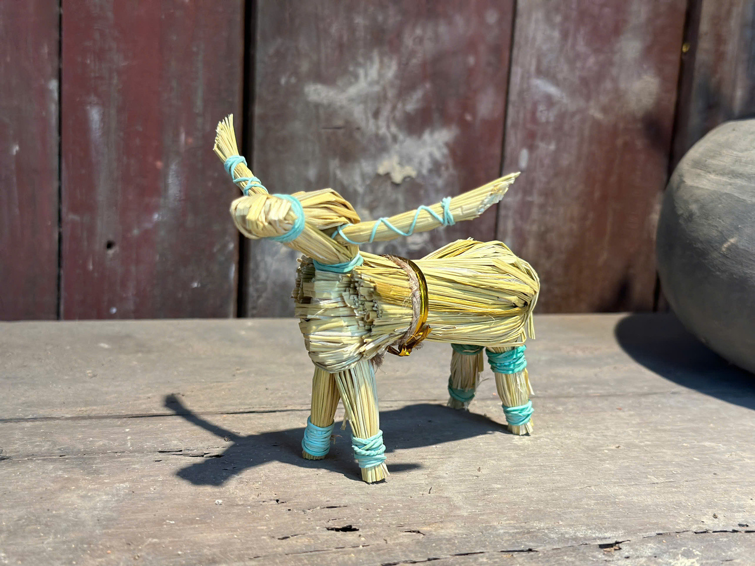 Những con vật gần gũi với làng quê Việt Nam như trâu, ngựa... được làm từ rơm rạ.
