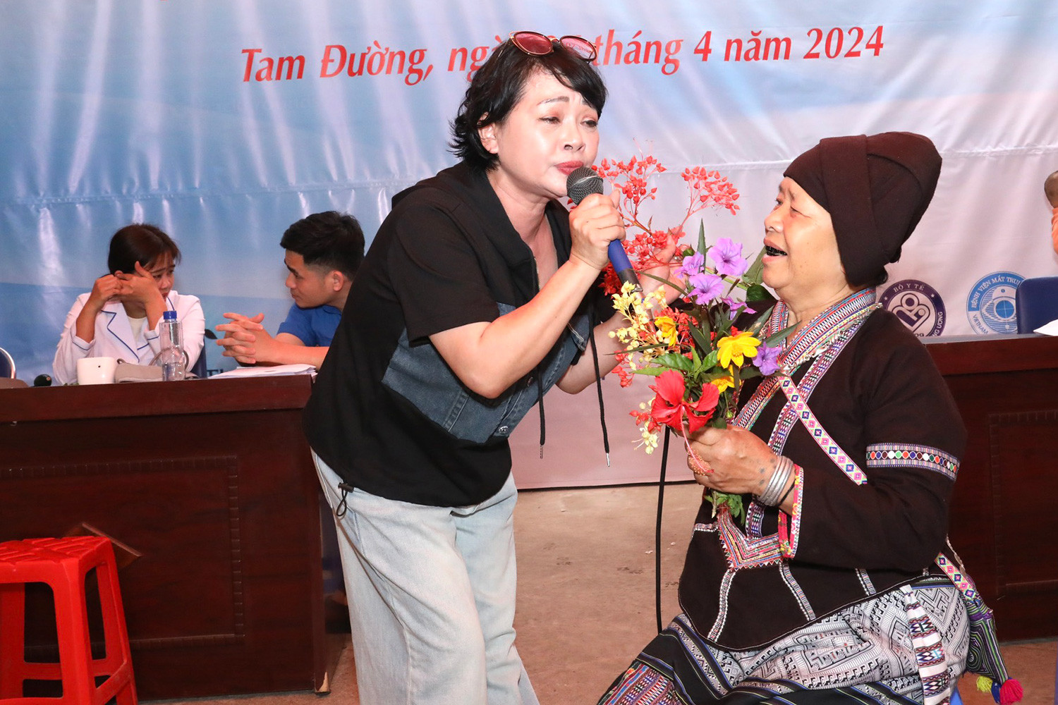 "Tôi thực sự xúc động khi có người thức dậy từ 4h sáng, đi bộ nhiều km để tới Trung tâm Y tế xã Bản Hon. Chuyến thiện nguyện nào tôi đều cố gắng mời nhiều nghệ sĩ tham gia để mang lời ca, tiếng hát tới bà con", nghệ sĩ Trà My chia sẻ.