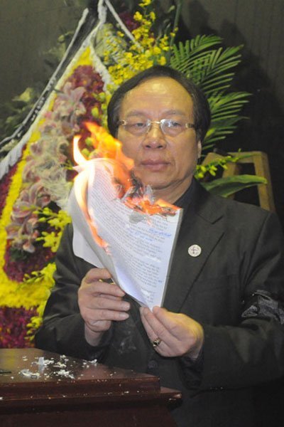 | NSND Lê Tiến Thọ đốt điếu văn |