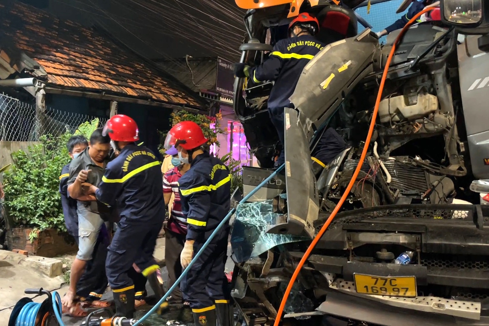 Sự cố giao thông khiến đầu xe tải do anh Cư điều khiển bị biến dạng hoàn toàn, 2 người may mắn thoát nạn. Riêng ông Phước bị mắc kẹt lại trong cabin, kêu cứu thảm thiết. Dù mọi người cố gắng nhưng không thể kéo được người đàn ông này ra ngoài.