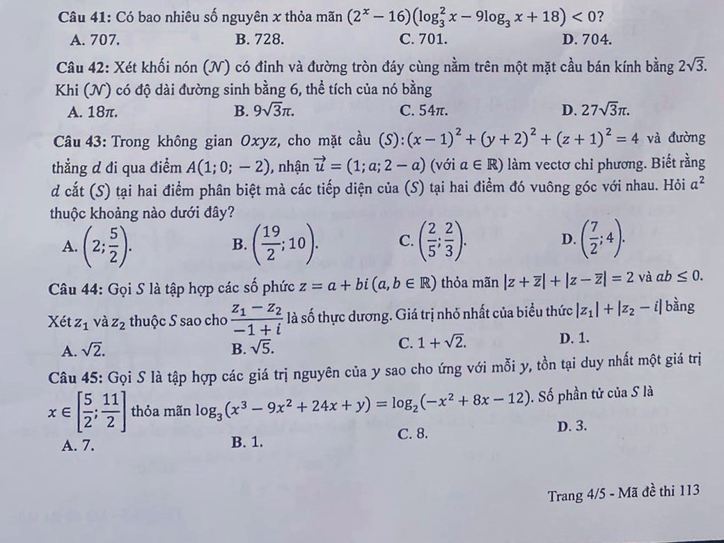 Câu 41 đến câu 45 được cho là truyền ra ngoài khi thí sinh đang làm bài.