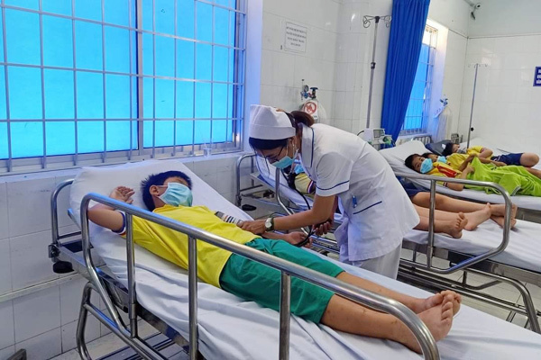 Các em học sinh nằm cấp cứu tại Bệnh viện Lê Lợi nghi do ngộ độc thực phẩm