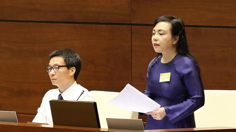 Bộ trưởng Nguyễn Thị Kim Tiến báo cáo việc thực hiện nghị quyết của QH về chất vấn và trả lời chất vấn tại kỳ họp thứ 3 của QH.