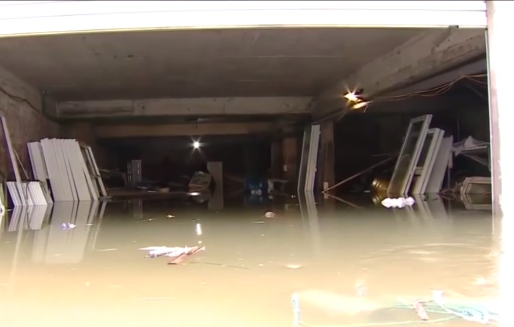 | Tầng hầm các nhà liền kề luôn trong tình trạng ngập sâu trong nước khi mưa lớn. |