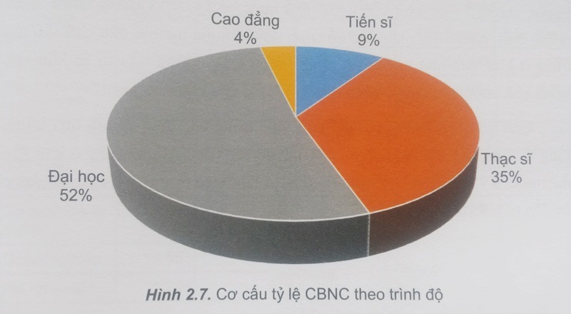 Theo thống kê của Bộ Khoa học và Công nghệ, năm 2013, Việt Nam có 12,261 tiến sĩ tham gia hoạt động nghiên cứu khoa học, chiếm 9% tổng số cán bộ nghiên cứu.