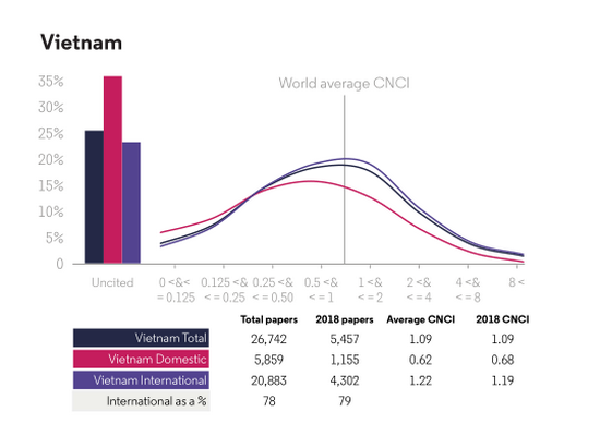 - Việt Nam tăng trưởng nhanh nhất trong khi Singapore, Ấn Độ và Pakistan có tổng sản lượng nhiều nhất về kết quả công bố khoa học.